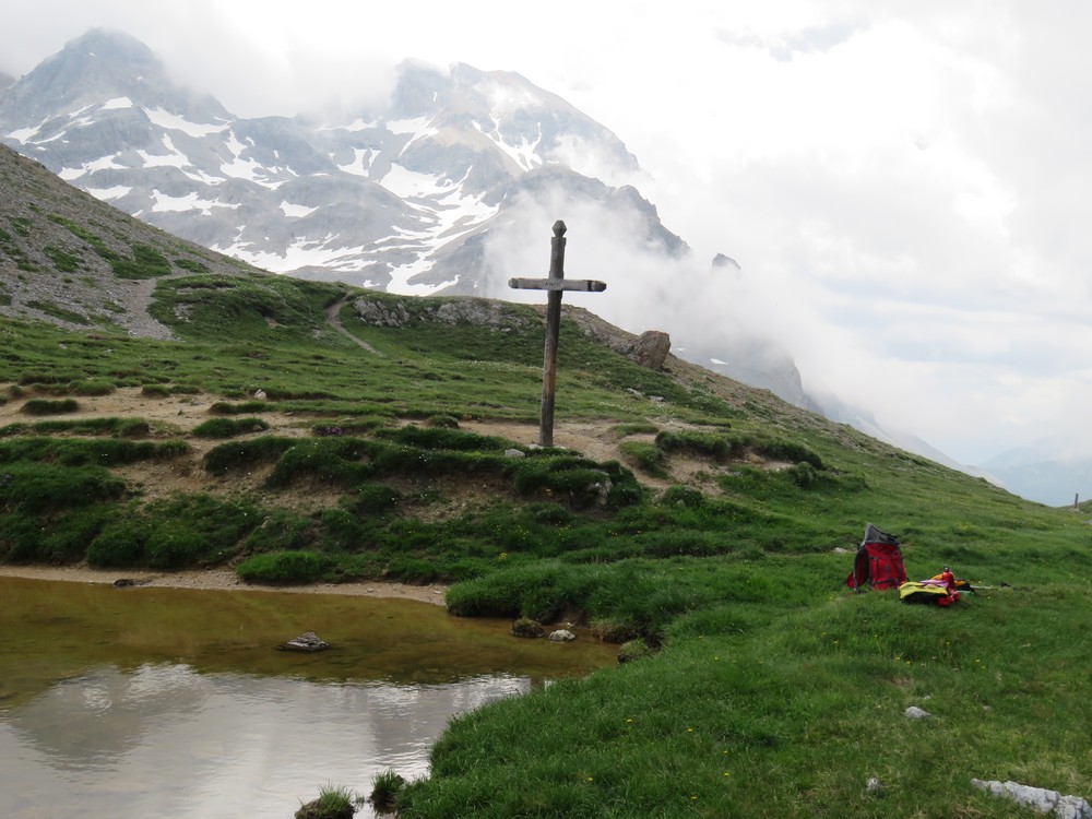 Arrivé au col vers 11 h 30 et déjeuner près de la croix et du petit lac.