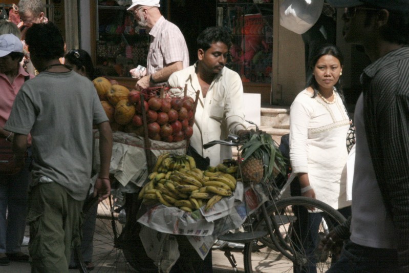 Puis, nous flânons dans les ruelles étroites afin de convertir un peu d'argent (Un euro = 103 roupis).
