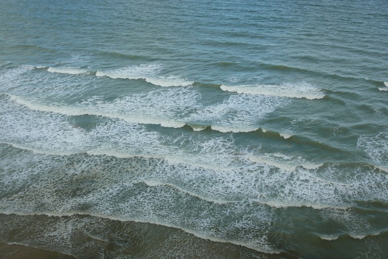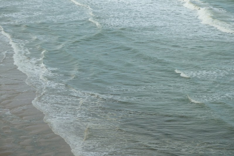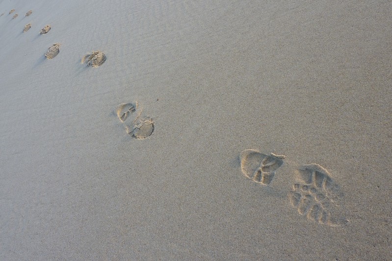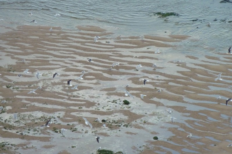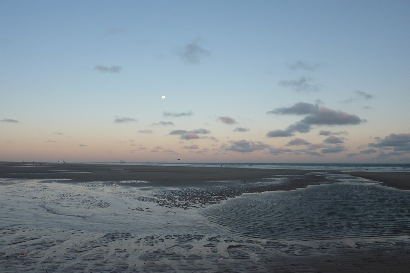 La mer est éloignée en marée basse. Le doux son des vagues me berce déjà et m'accompagne incessant durant ma longue marche sur un lit de sable, entrecoupée d'eau de mer..
