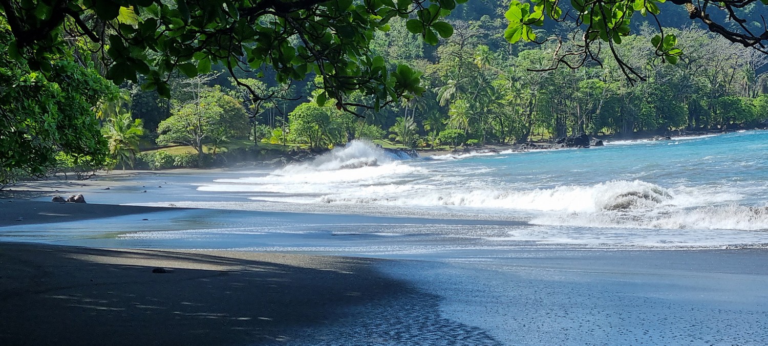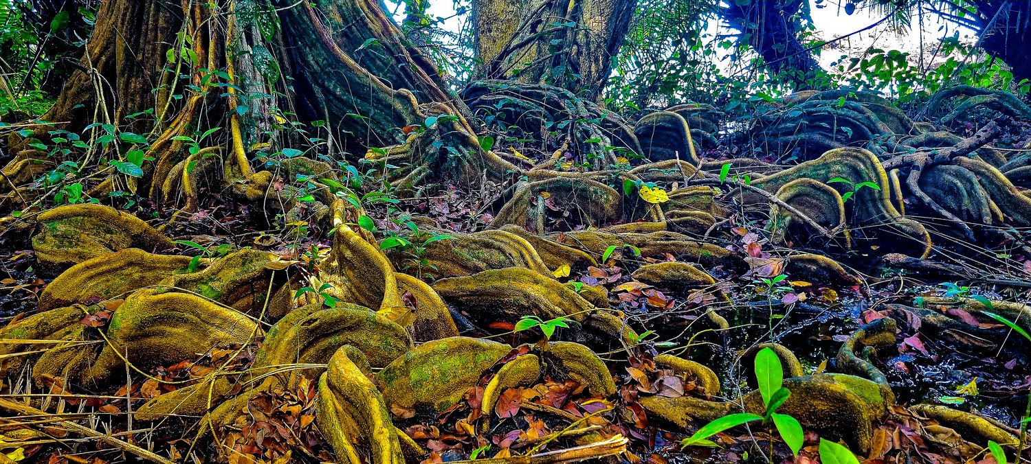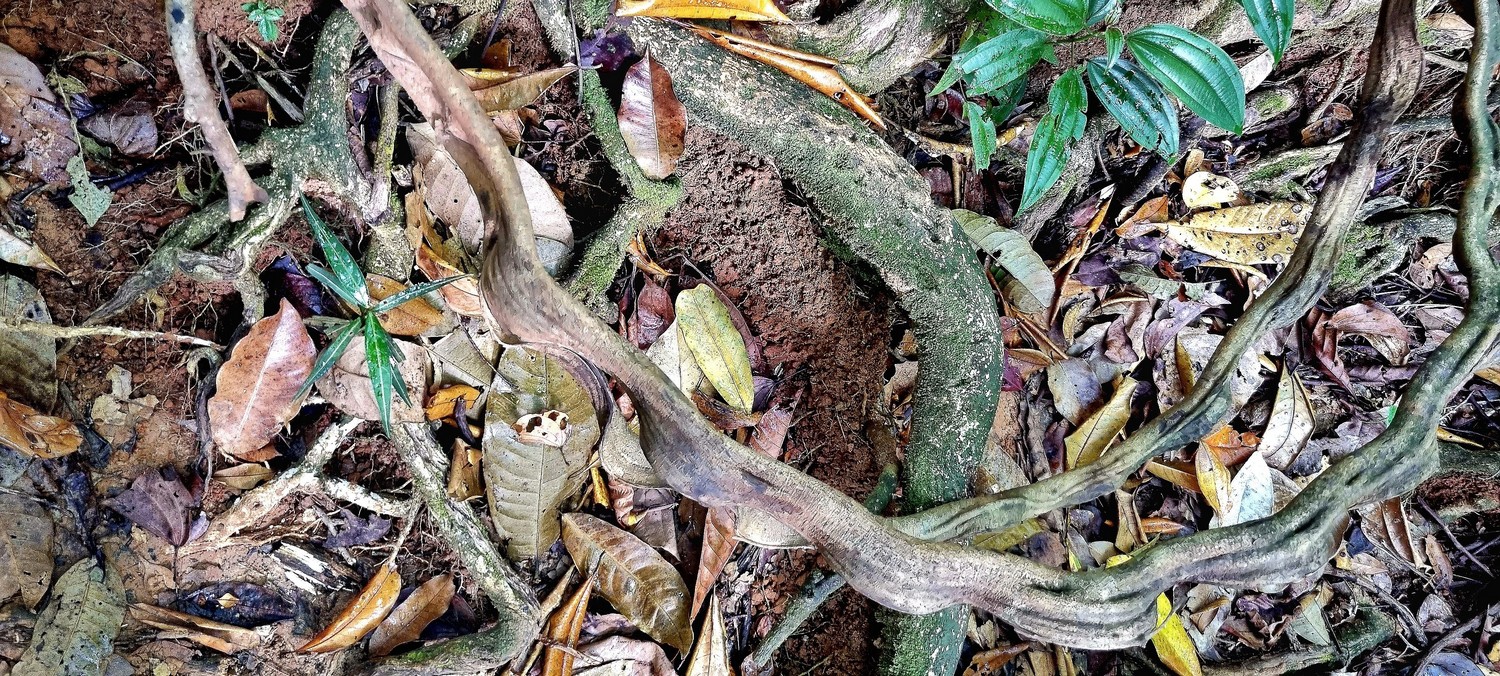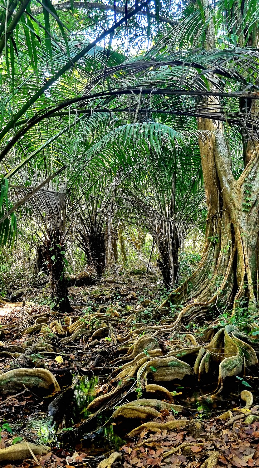 Nous nous enfonçons dans la jungle épaisse en bordure de l'océan puis à l'intérieur de la forêt.