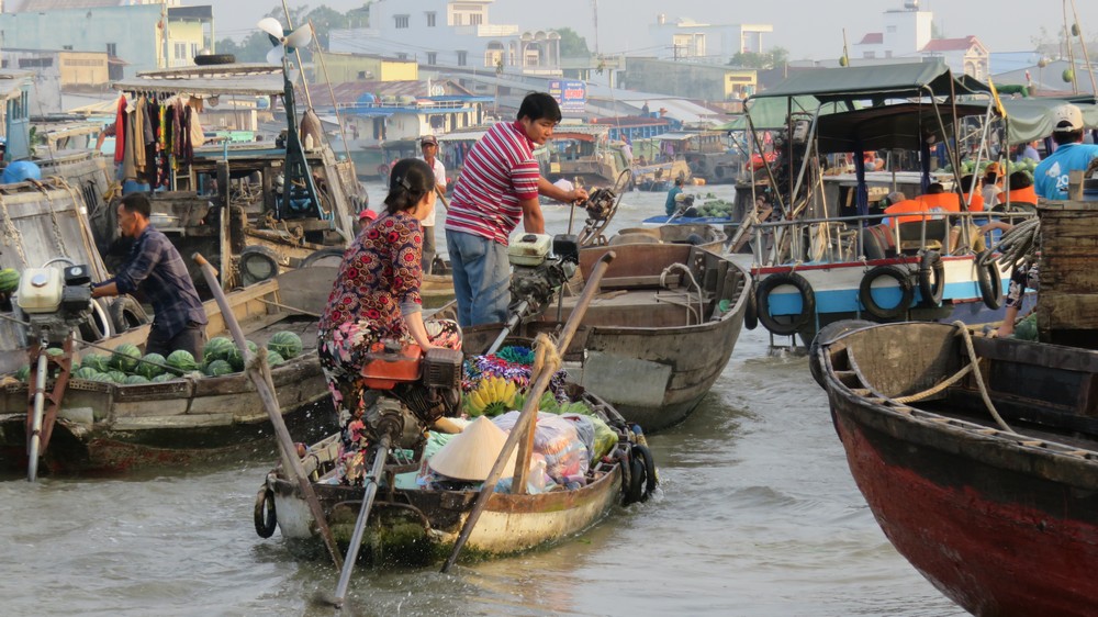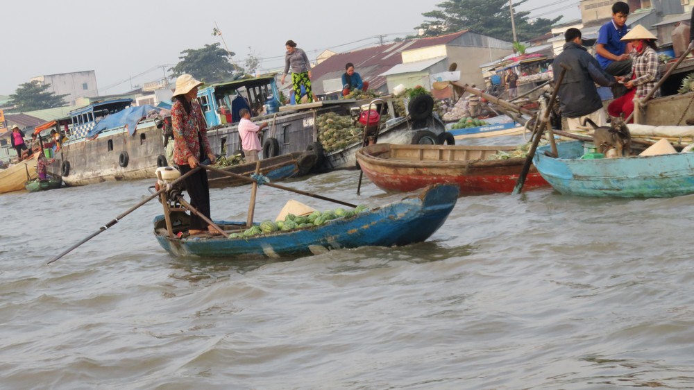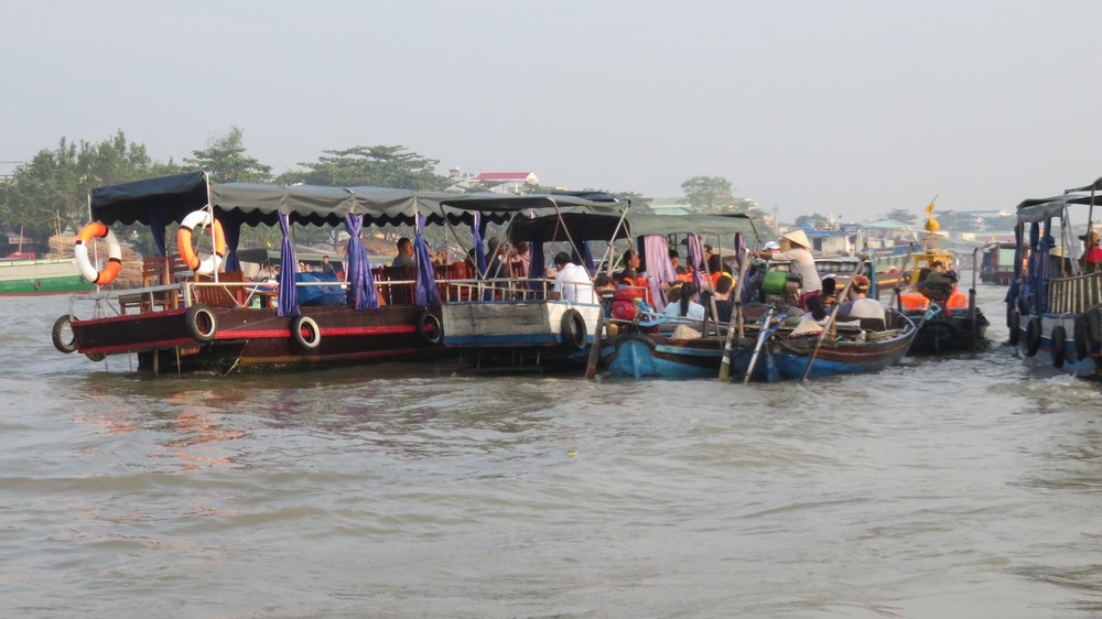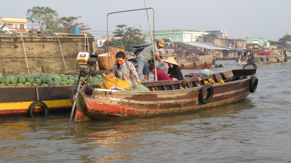 Le lendemain, nous partons pour Can Tho et son célèbre marché flottant, qui se trouve dans le delta du Mékong, à 4 heures de route de Ho Chi Minh ville. Une fois sur place, nous nous levons très tôt pour naviguer sur le Mékong et ne rien manquer. Je dois dire que j'ai été vraiment décu car je pensais encore aux images véhiculées dans les reportages ou les livres... mais la réalité du tourisme et du business à aujourd'hui pris le dessus et le désenchantement est bien réel. Je pense, après coup, que les services d'un bon guide sont indispensables pour pouvoir retrouver un brin d'authenticité dans la région. Toutefois, des moments intéressants étaient présents, comme la fabrication des galettes et nouilles de riz.