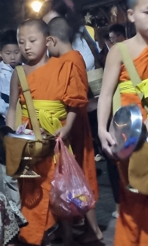 Aujourd'hui, lever 5 heures, pour assister aux offrandes offertes aux bonzes (le Tak Bat).
