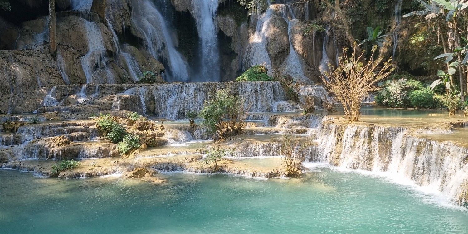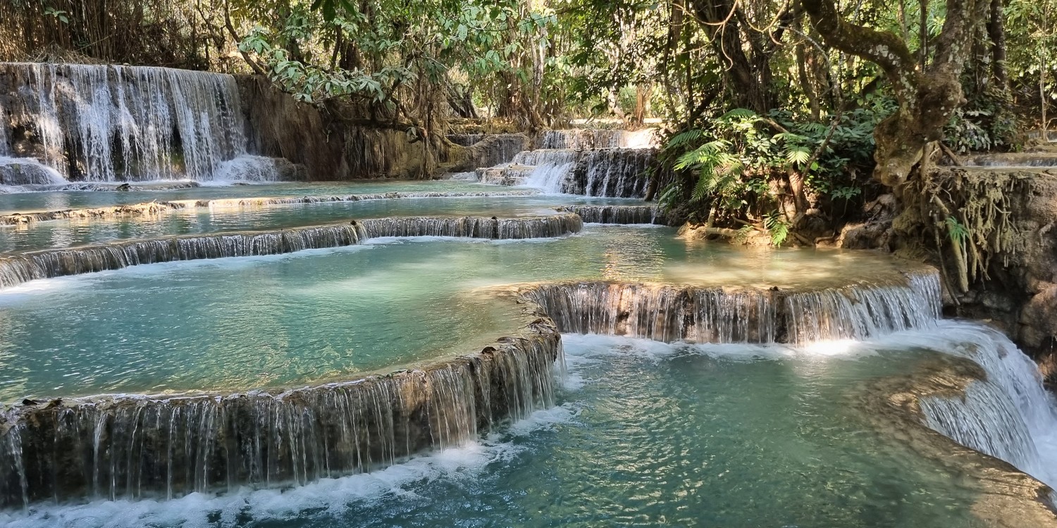 Celles-ci sont spectaculaires. Étagées dans un écrin de verdure, elles descendent à travers une forêt dense tropicale et les couleurs