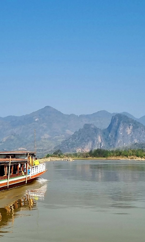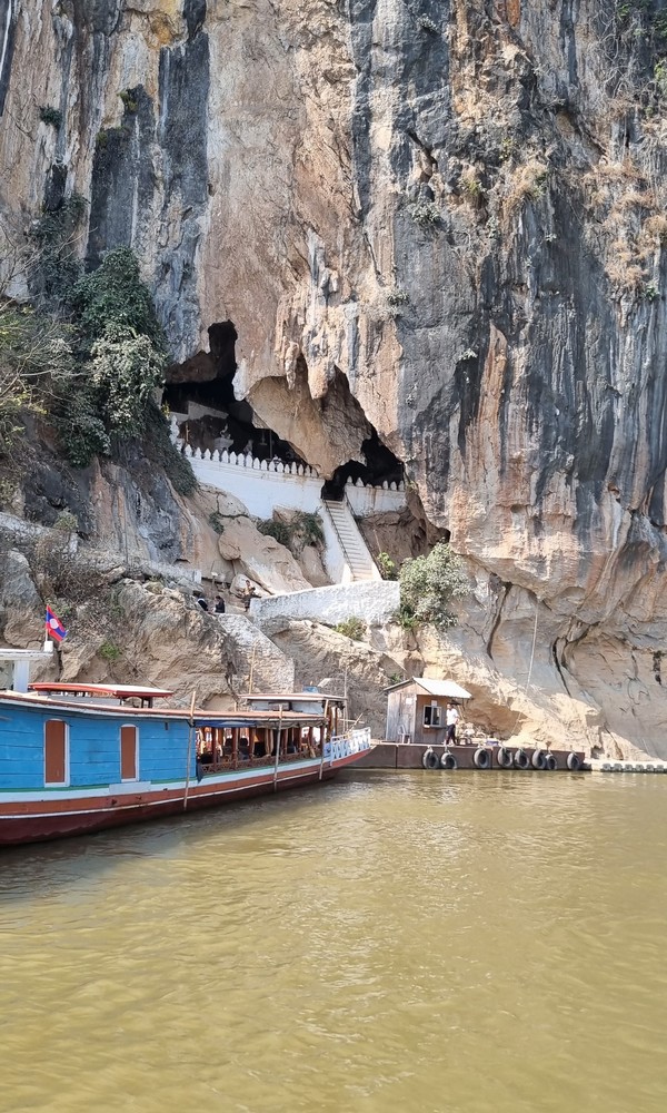 Départ le lendemain sur le Mékong, pour la visite des grottes de Pak Ou et le whisky village (Lao Lao village). Mon avis, les grottes, c'était nul,