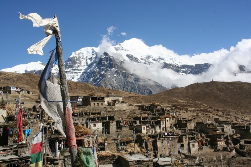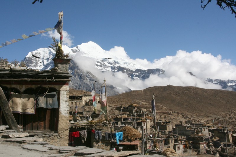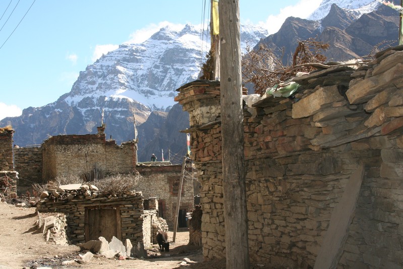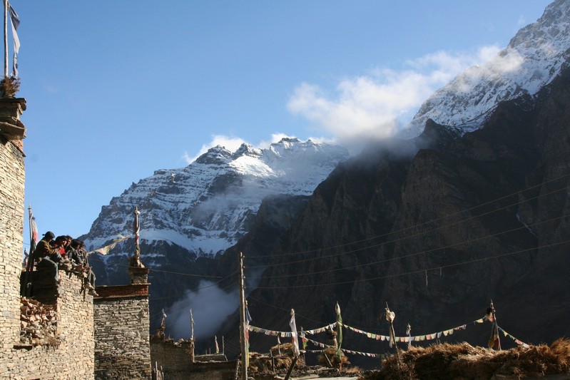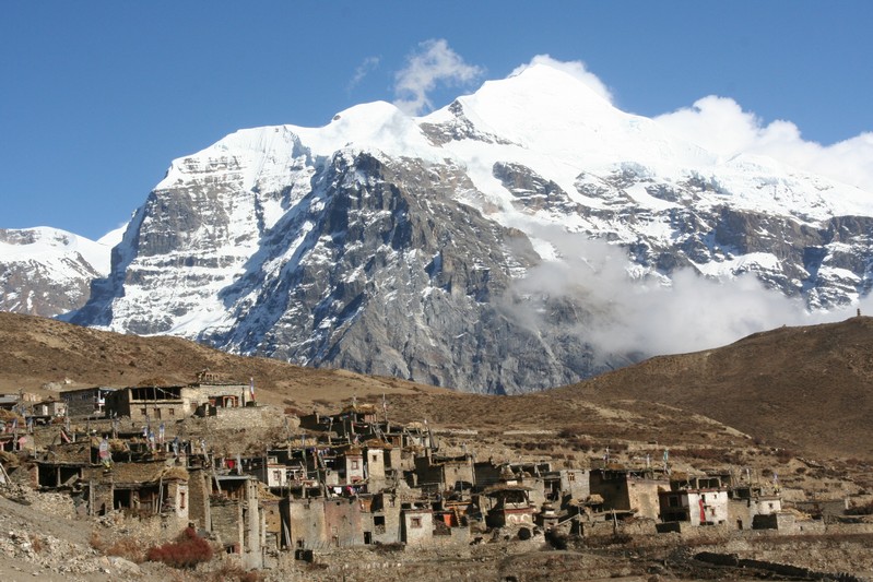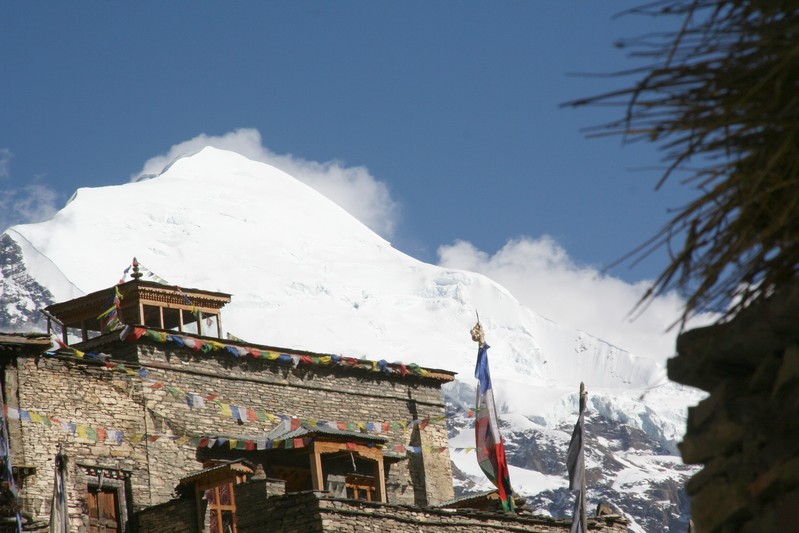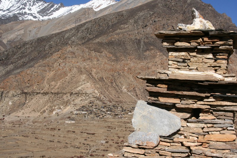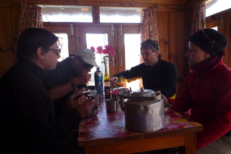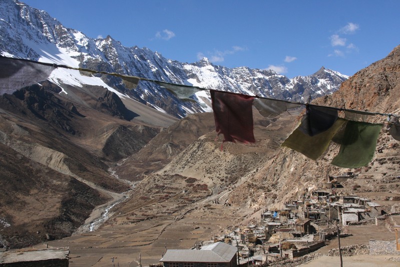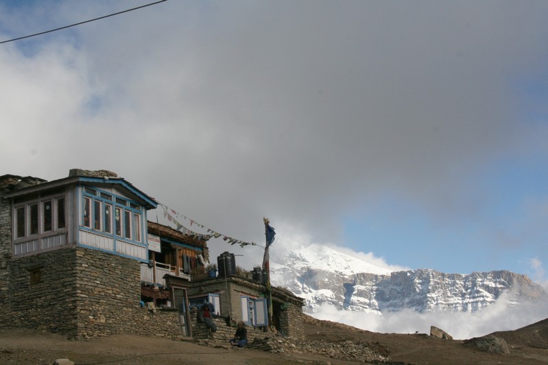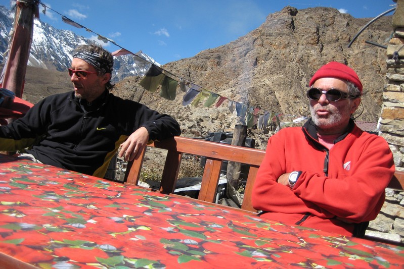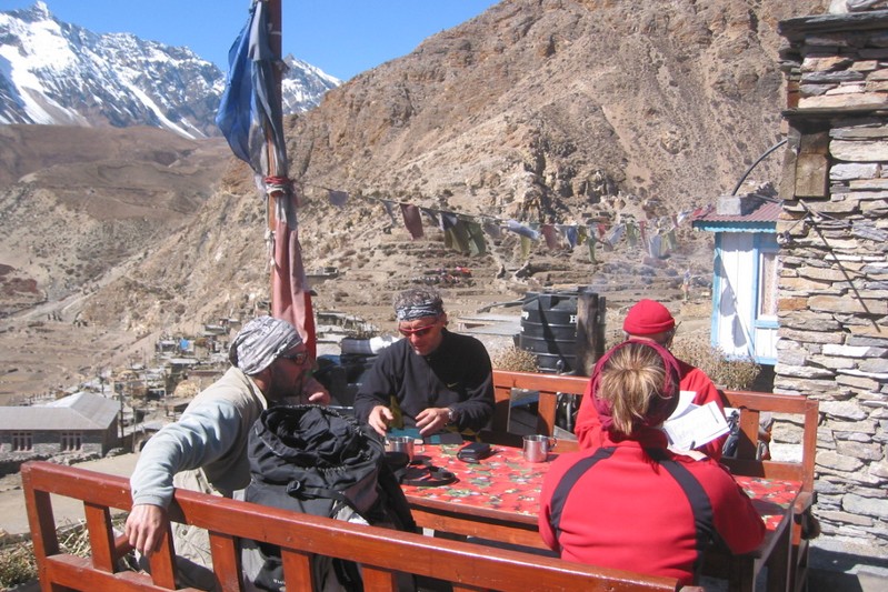 Arrivés dans le petit village de Nar, nous décidons de séjourner en lodge (Shantilodge) car la place nécessaire pour tous est disponible. L'endroit est sympa avec une super vue sur le Kanguru et nous surplombons tout le village.