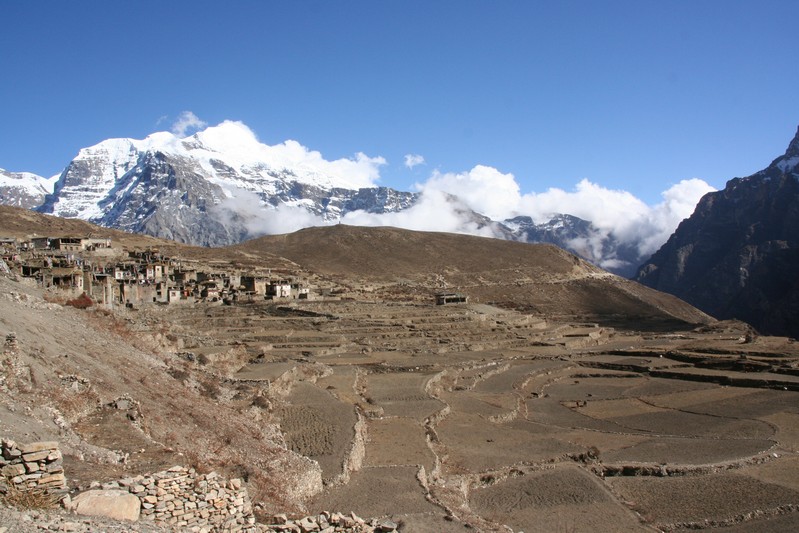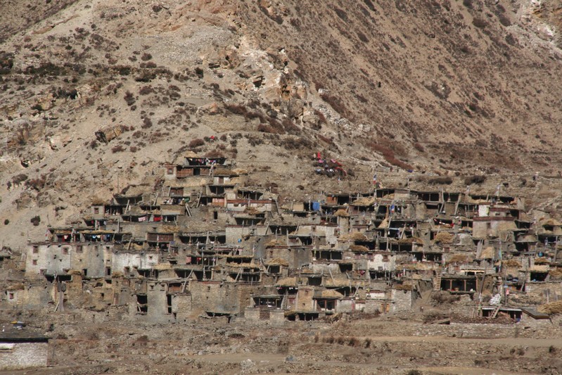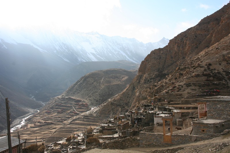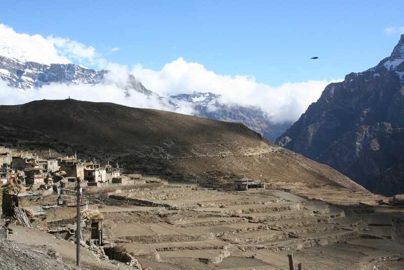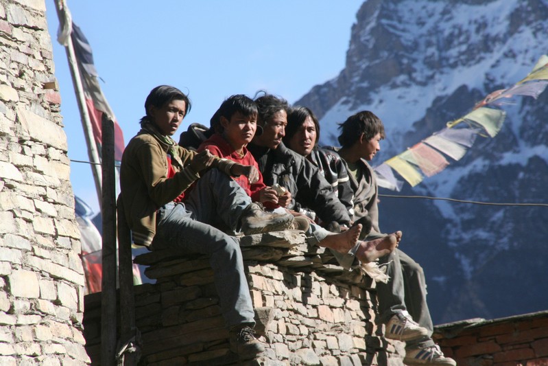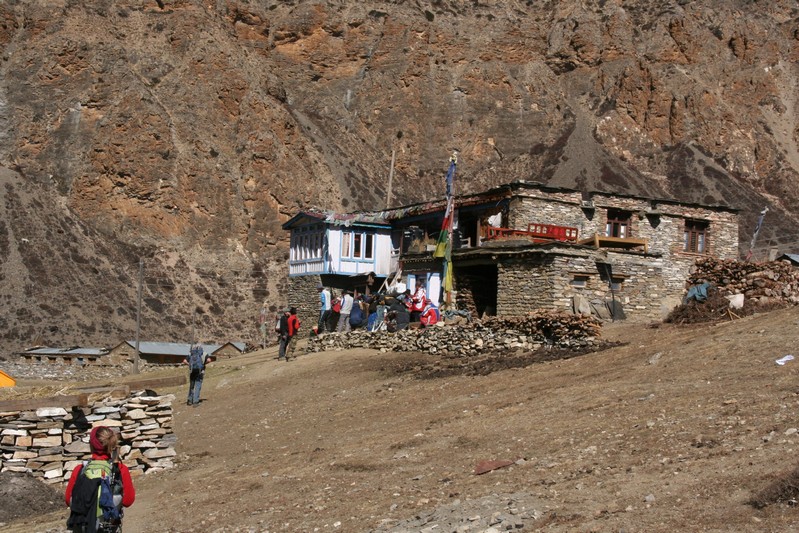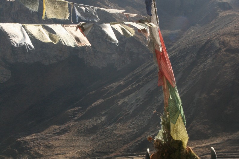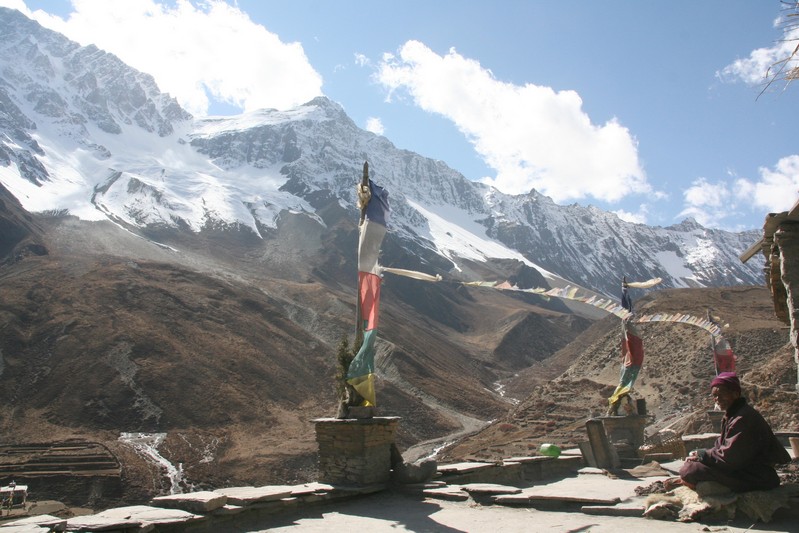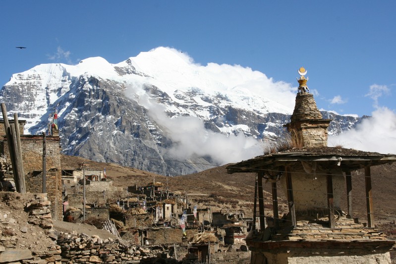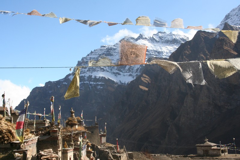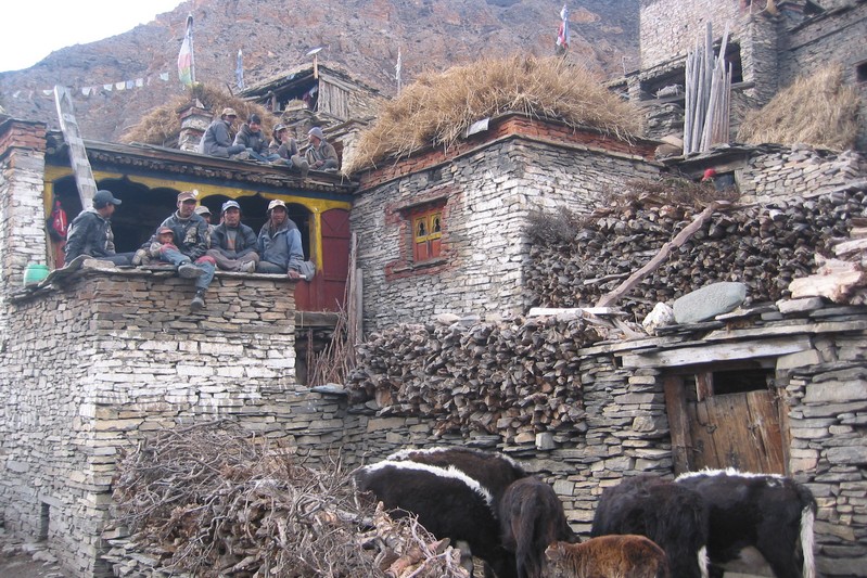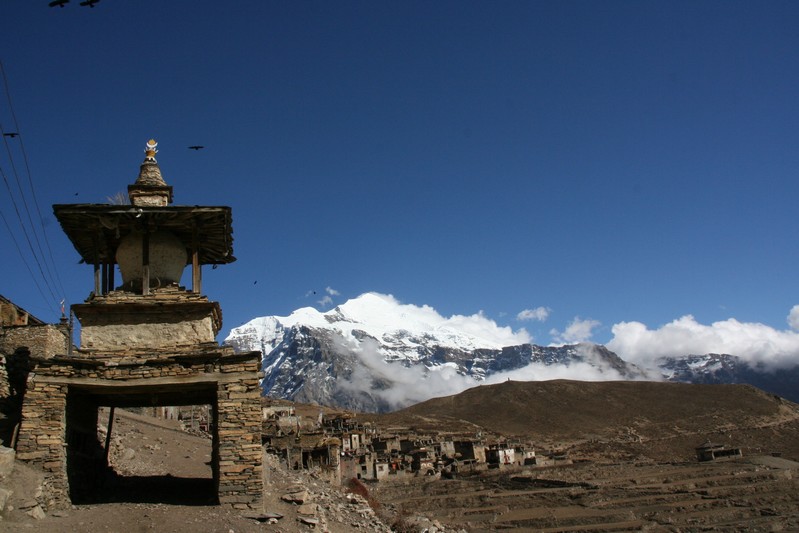 Arrivés dans le petit village de Nar, nous décidons de séjourner en lodge (Shantilodge) car la place nécessaire pour tous est disponible. L'endroit est sympa avec une super vue sur le Kanguru et nous surplombons tout le village.