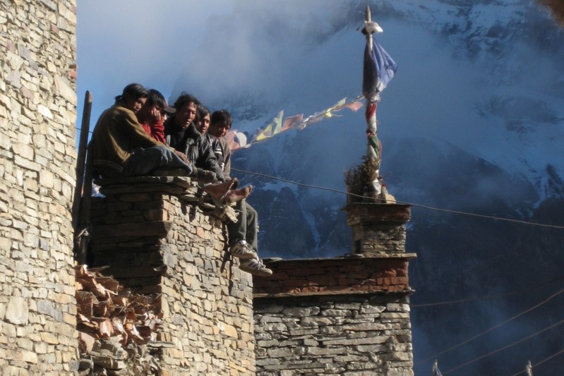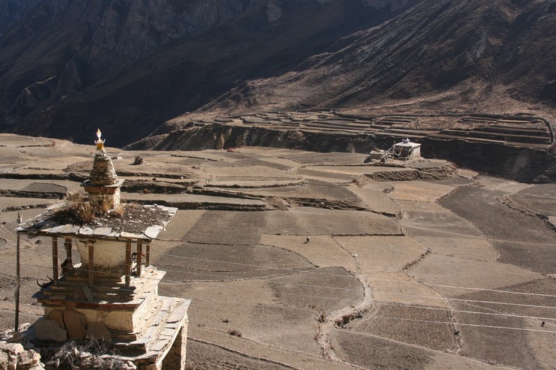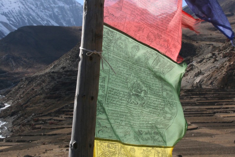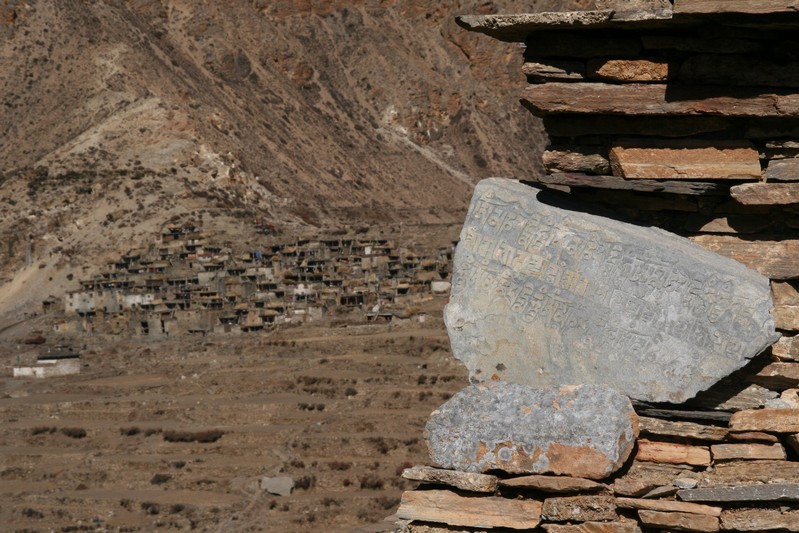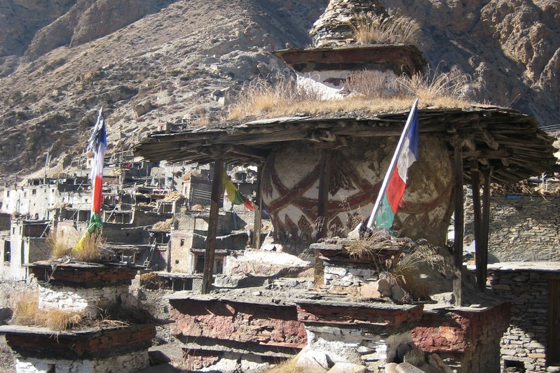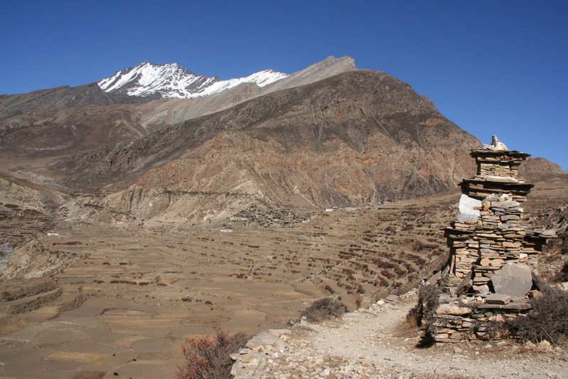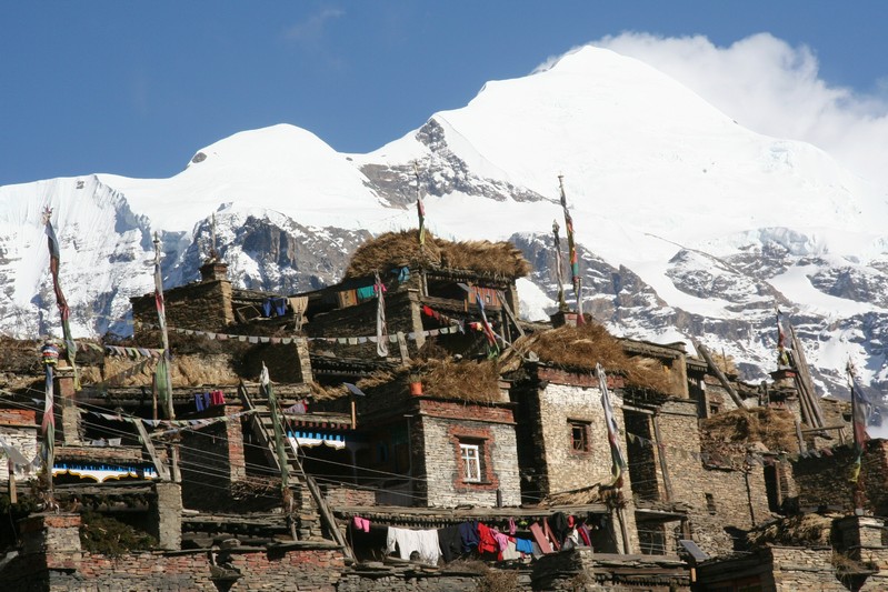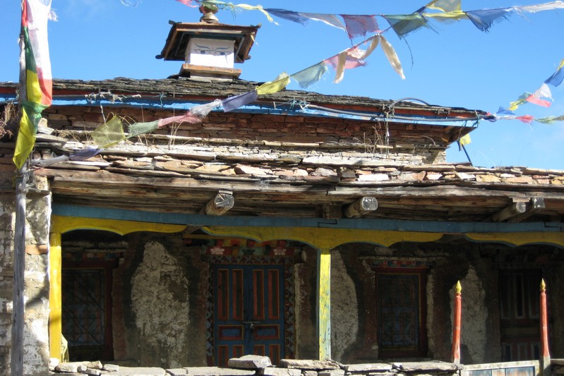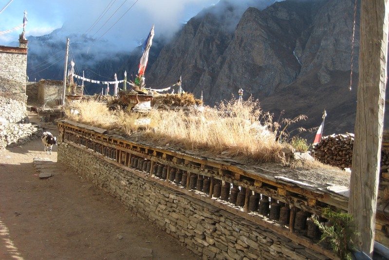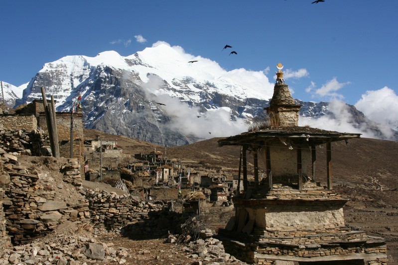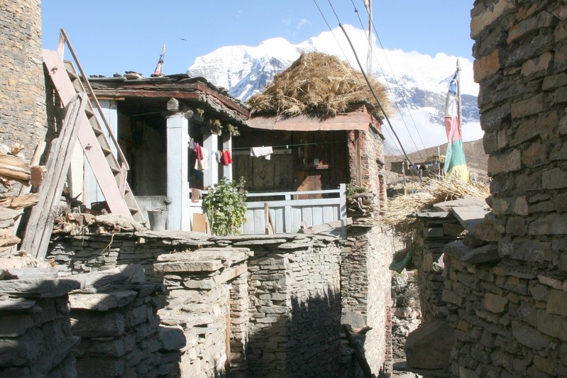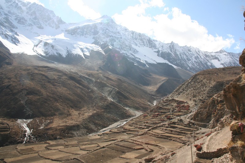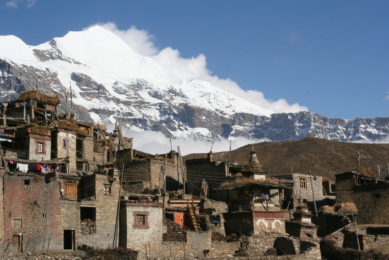 Arrivés dans le petit village de Nar, nous décidons de séjourner en lodge (Shantilodge) car la place nécessaire pour tous est disponible. L'endroit est sympa avec une super vue sur le Kanguru et nous surplombons tout le village.