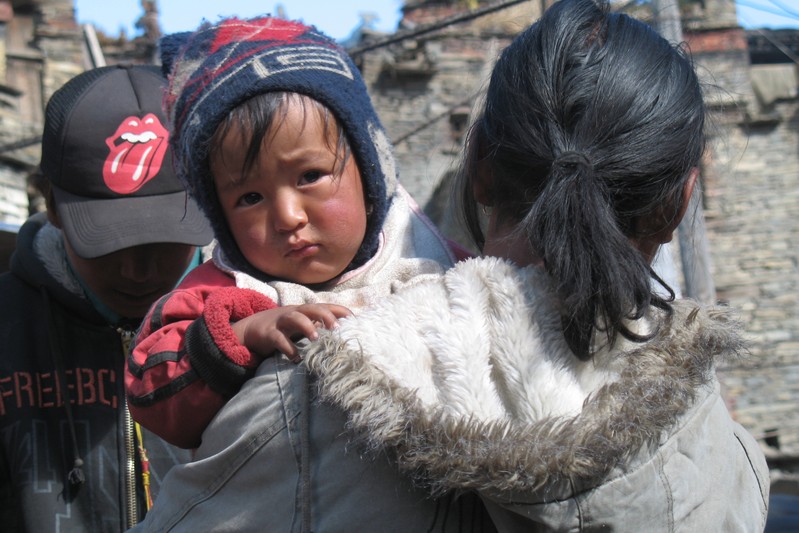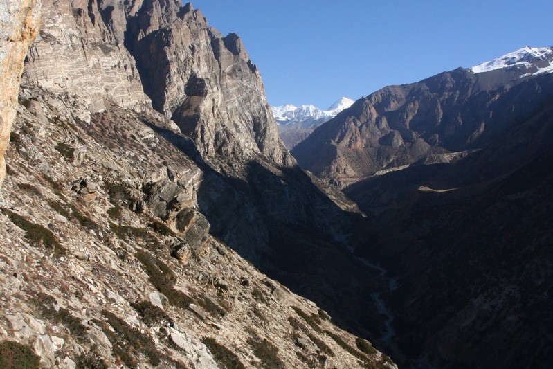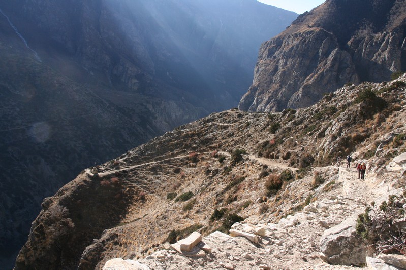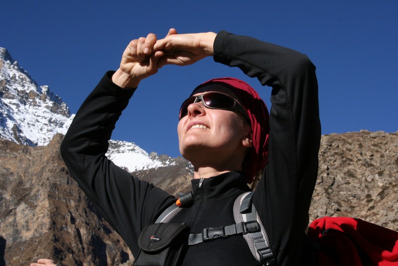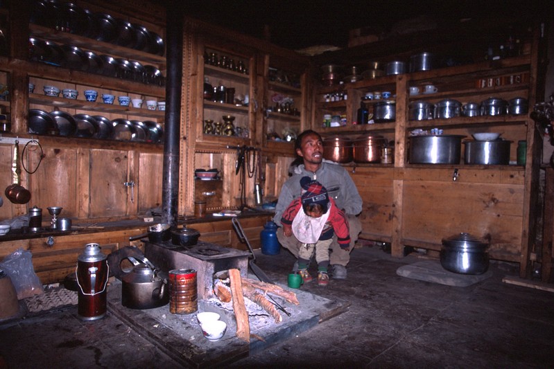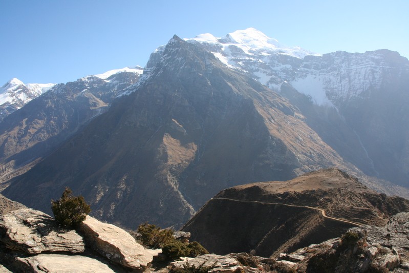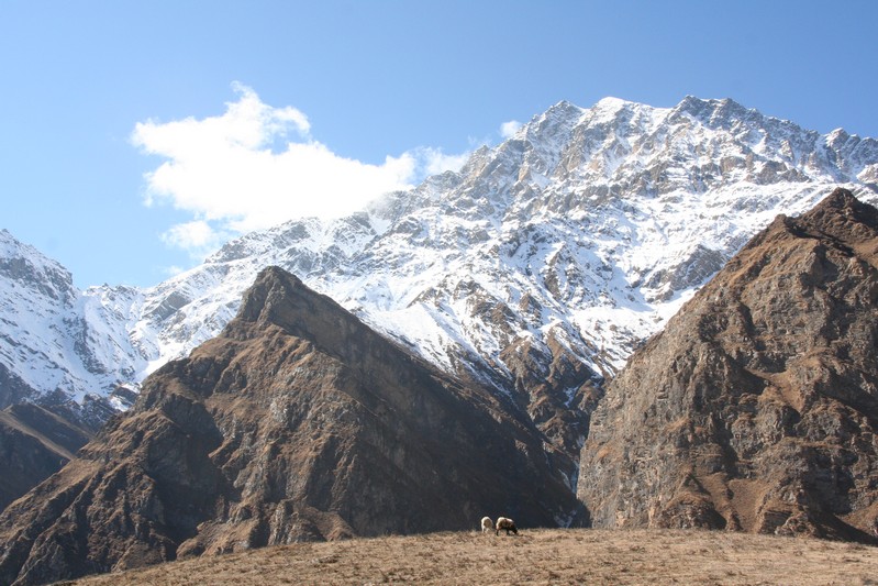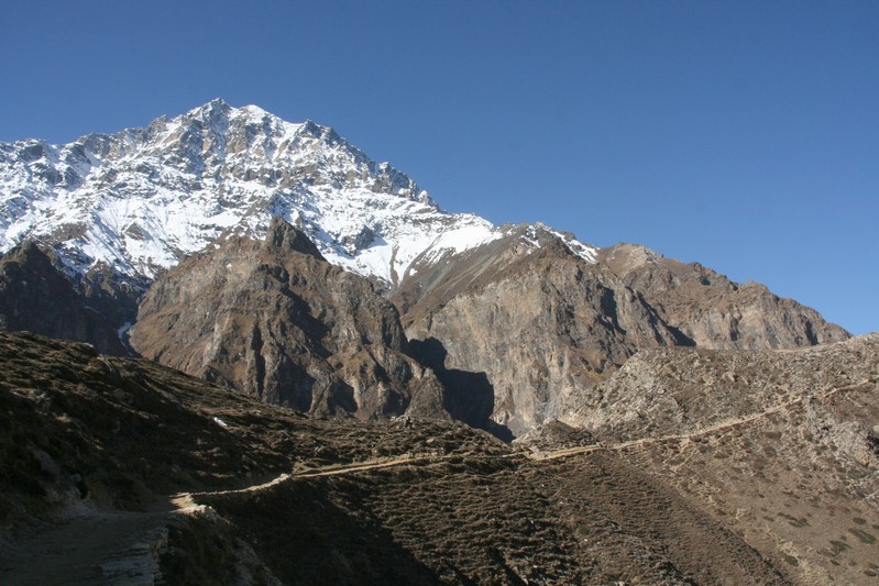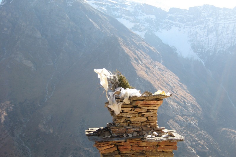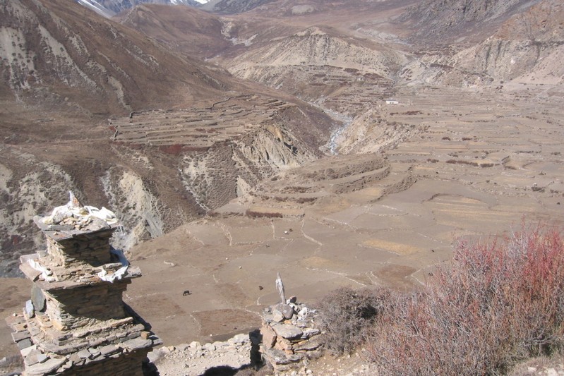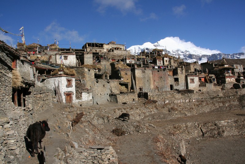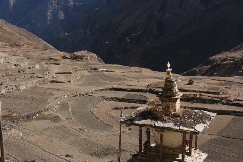Arrivés dans le petit village de Nar, nous décidons de séjourner en lodge (Shantilodge) car la place nécessaire pour tous est disponible. L'endroit est sympa avec une super vue sur le Kanguru et nous surplombons tout le village.
