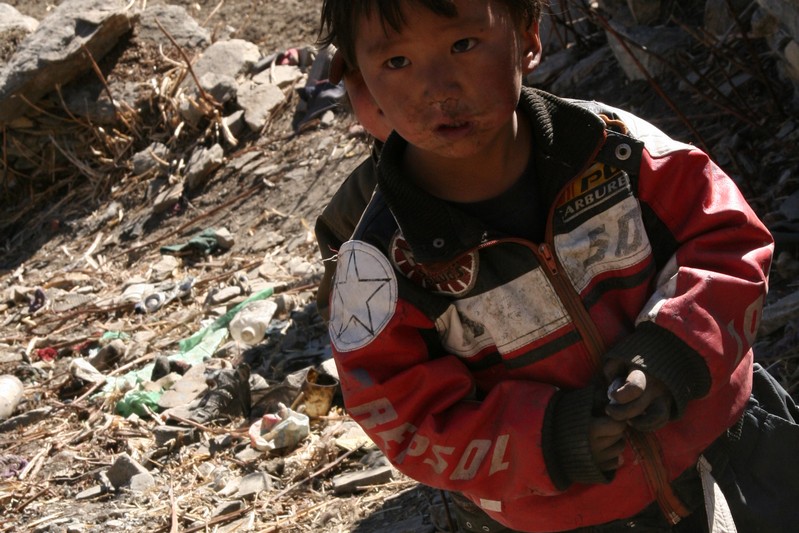 Nous discutons avec un jeune fermier, propriétaire de yacks qui nous montre ses couvertures et nous offre du thé. Il a travaillé 7 ans dans l'état de New York, dans le New Jersey et le Minesota... il est actuellement revenu dans son village natal car ses parents sont malades.