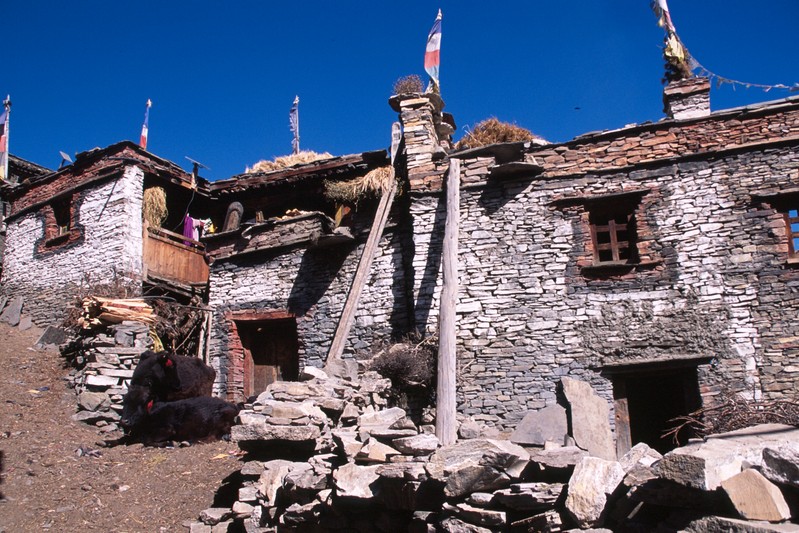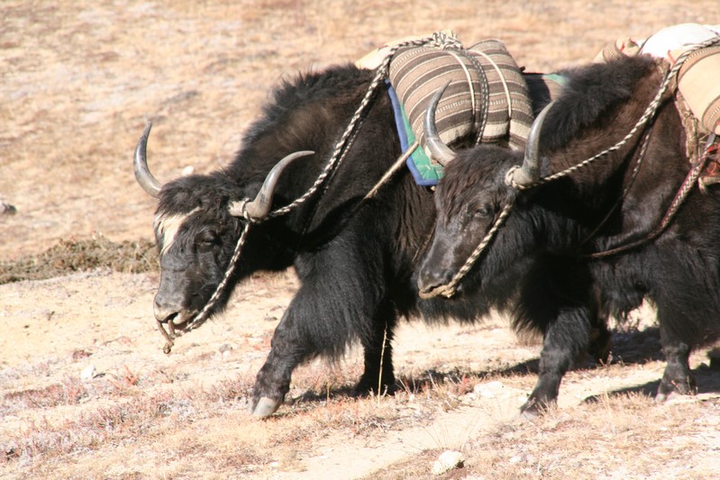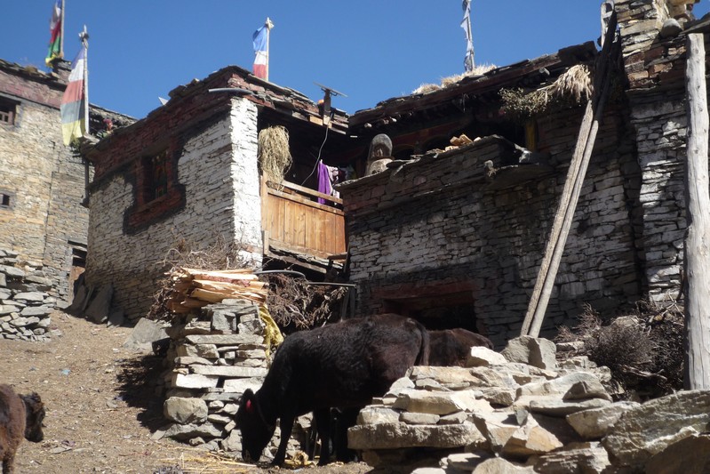 Les animaux sont totalement libres de se promener dans le village et ils sont nombreux : chevaux, poneys, moutons, chèvres, vaches, taureaux, yacks, poules, canards,...