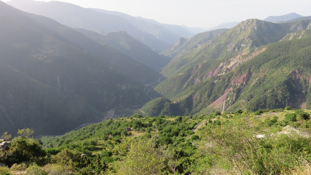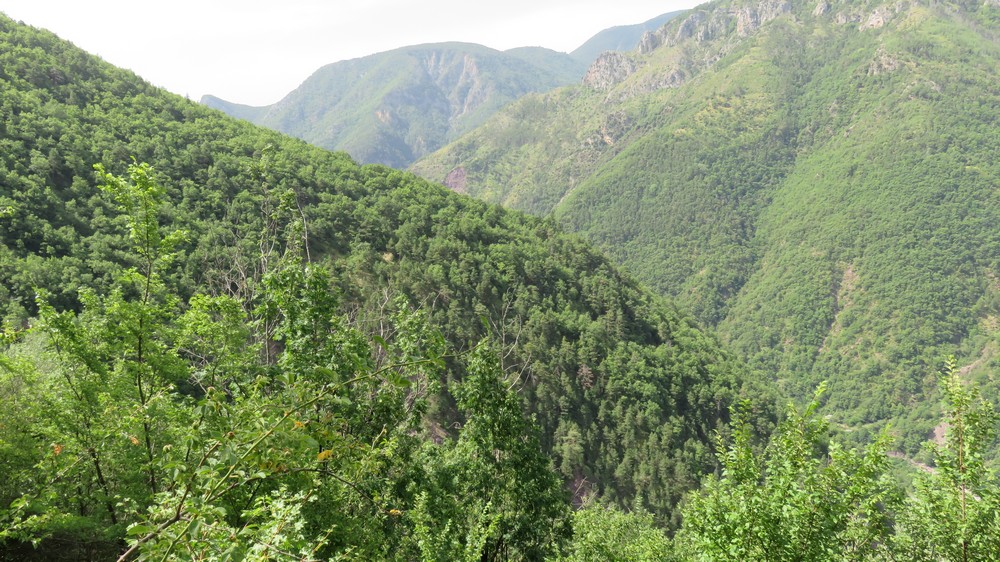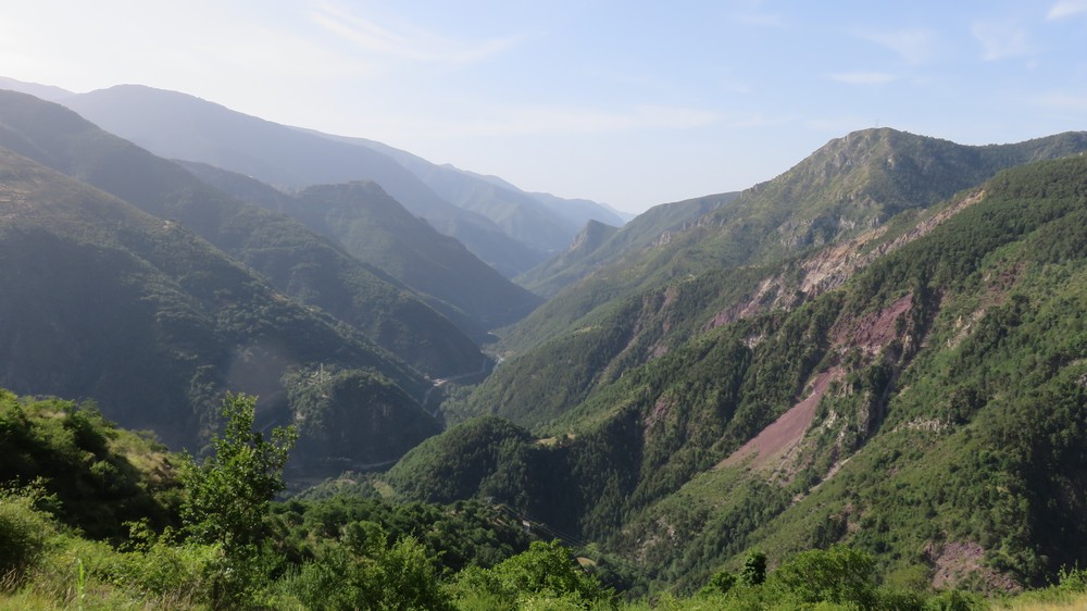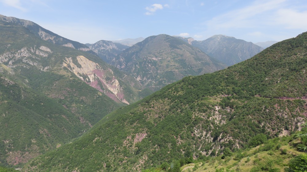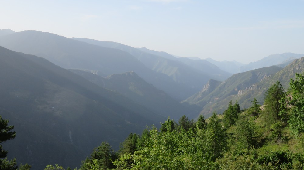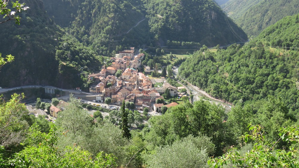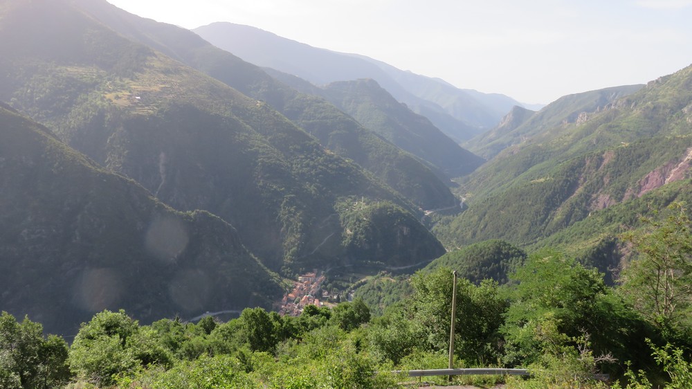 Longue descente vers Rougios (1424 m) -> Roure (1104 m) -> St Sauveur sur Tinée (500 m).. suivie d'une montée linaire dans la direction de Rimplas (1020 m).