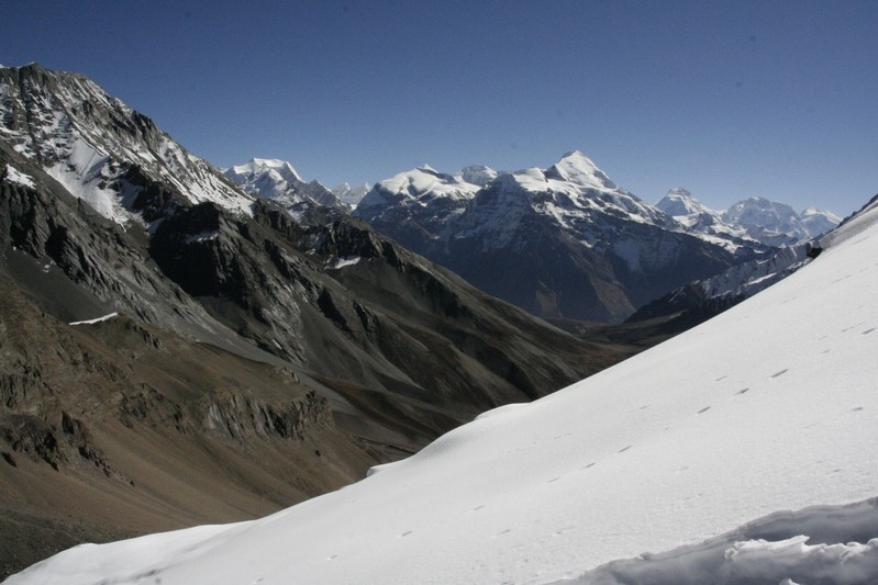 Le col est à 5300 m et nous offre une vue panoramique incommensurablement belle sur la chaine complête des Annapurnas.
