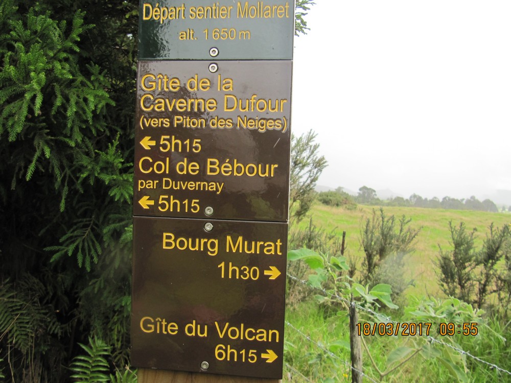 pour joindre l'auberge du Volcan. Arrivée vers 14 heures.
