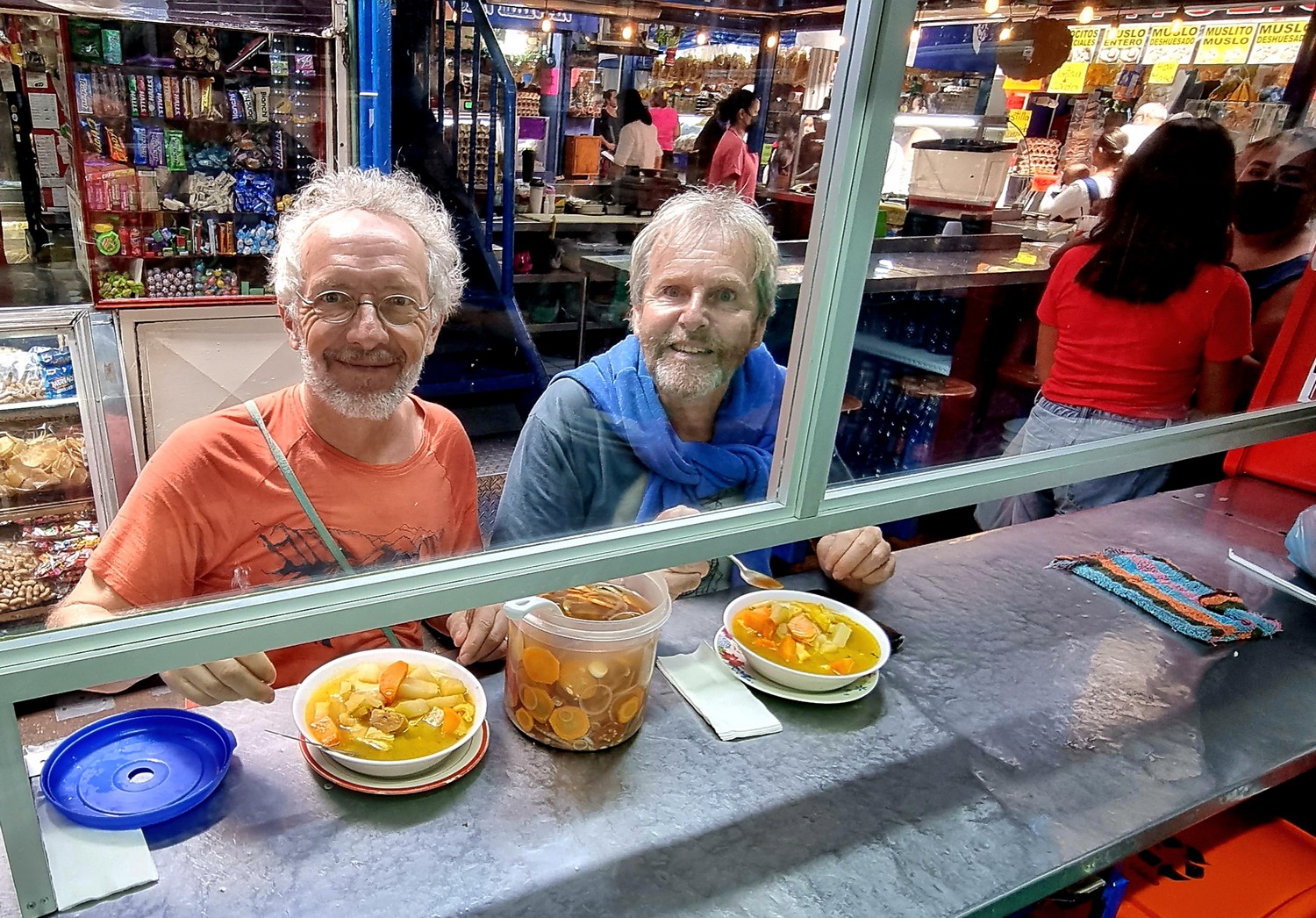 Nous allons déjeuner au marché couvert local, une bonne soupe chaude et épicée et nous glanerons dans la ville