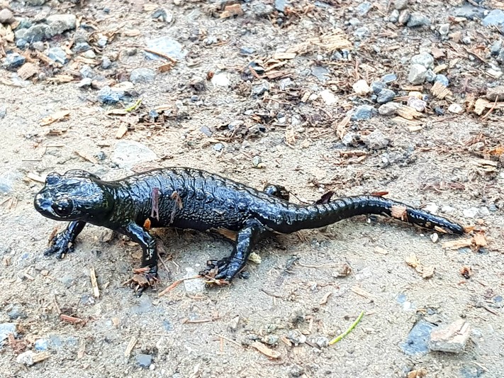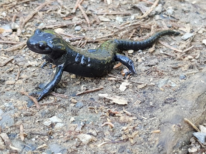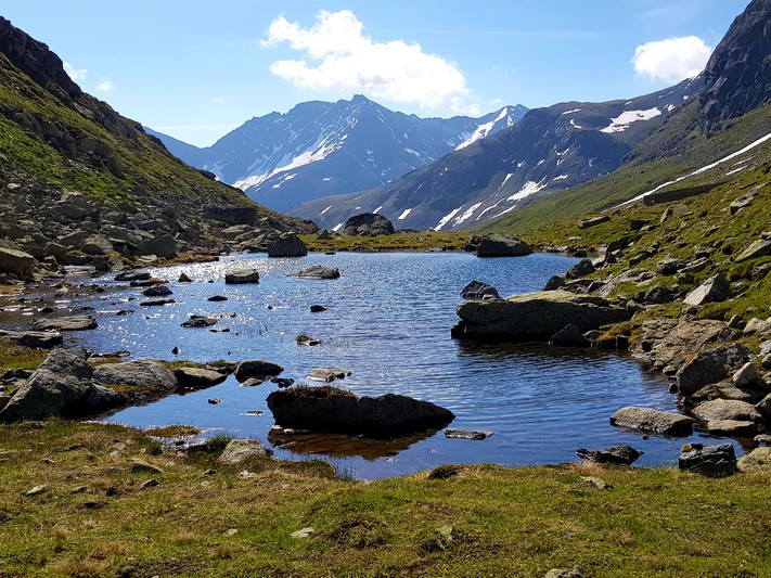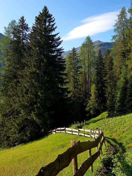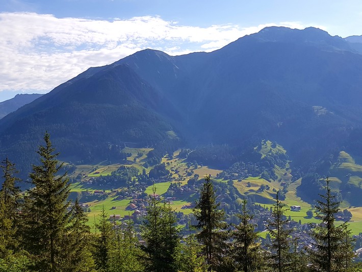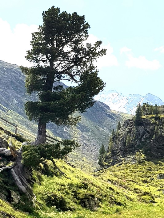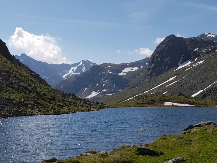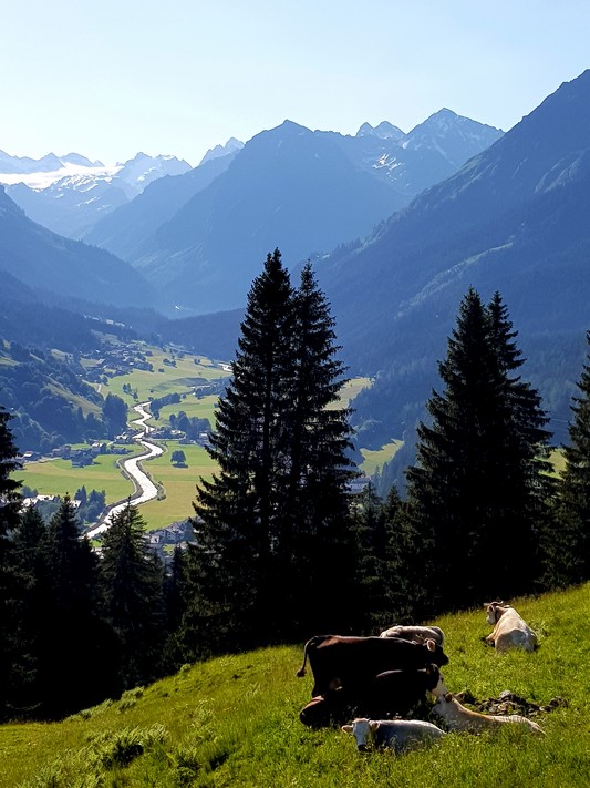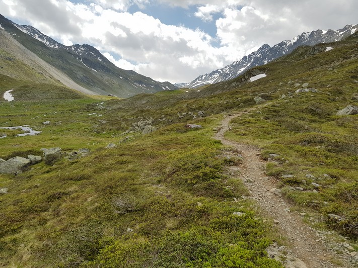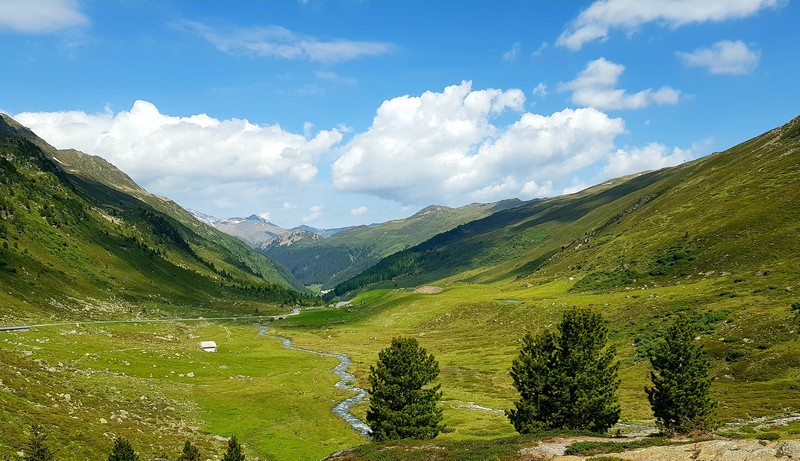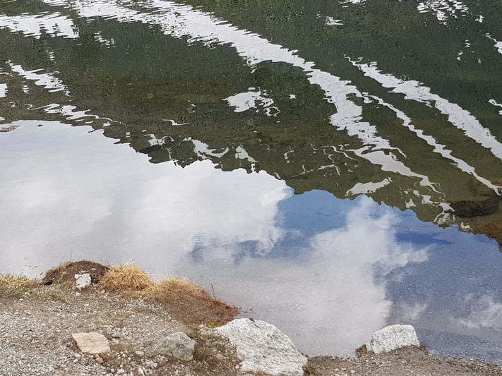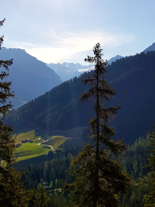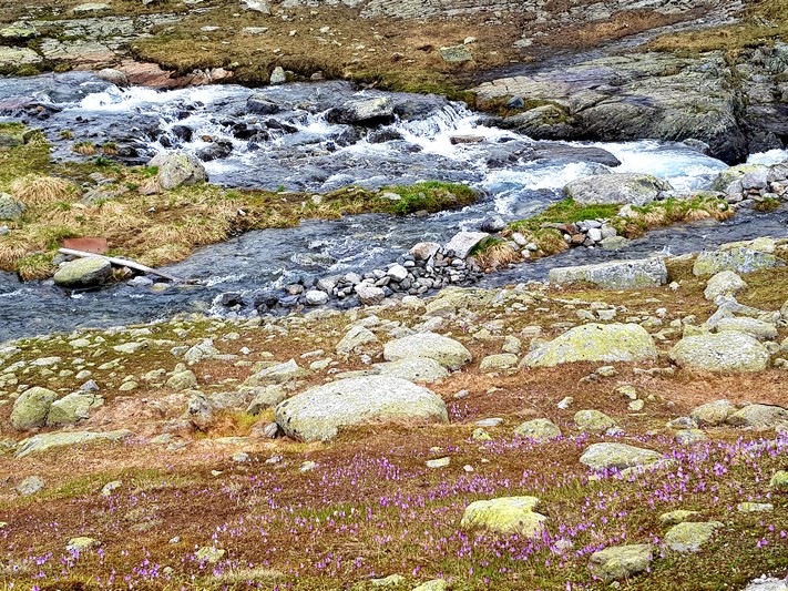 Je rejoins Adélio en passant à travers forêts de sapin, chemins d'altitude, torrent et névés.