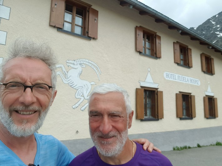 Nous finissons ensemble cette étape de montagne, pour rejoindre le col (2387 m) et l'hôtel Flüela Hospiz vers 15h30.