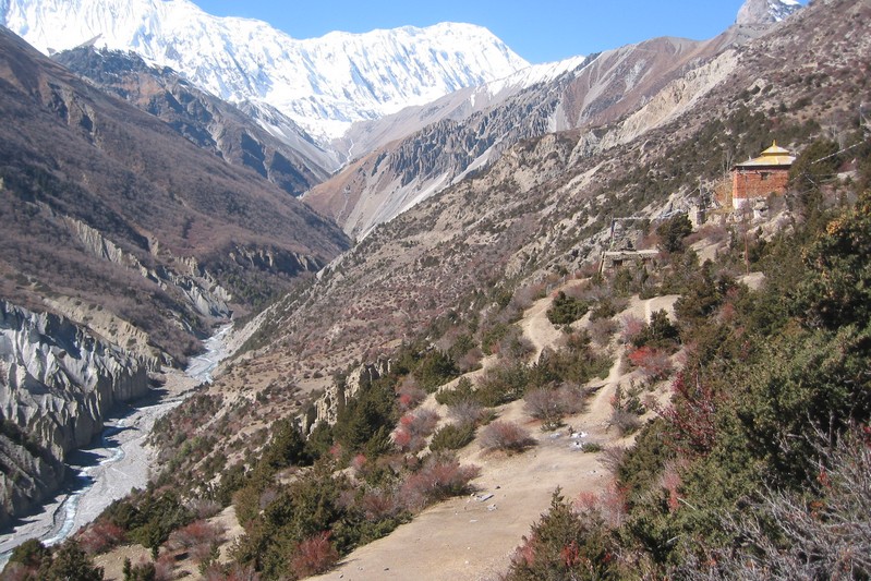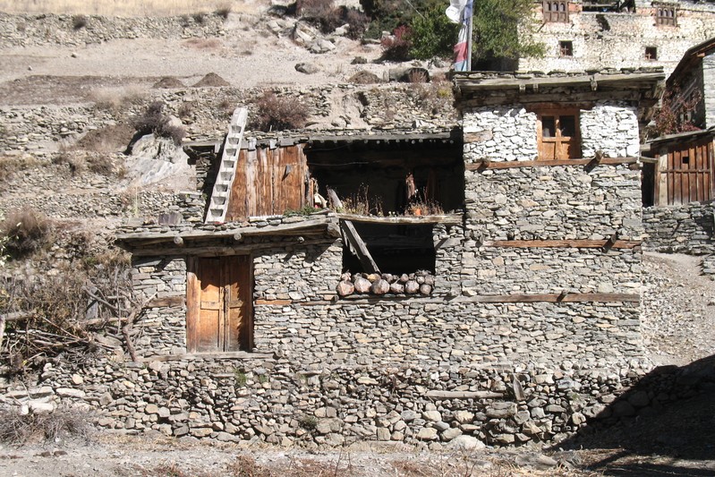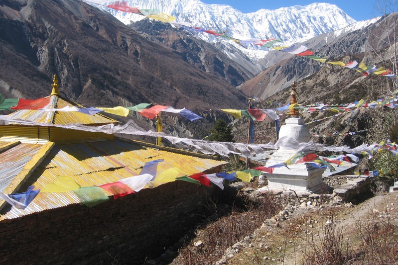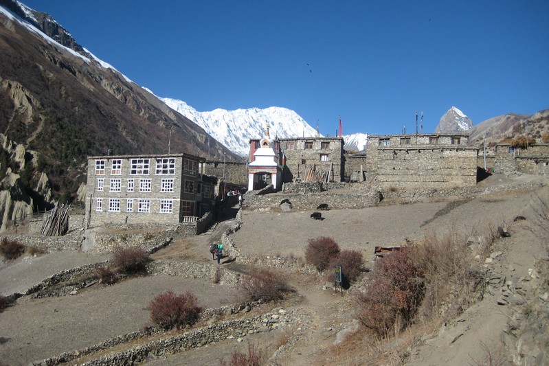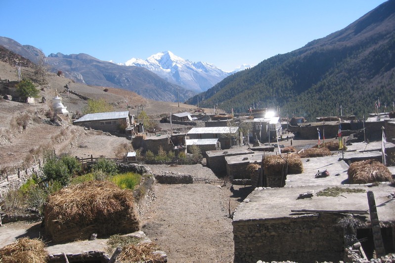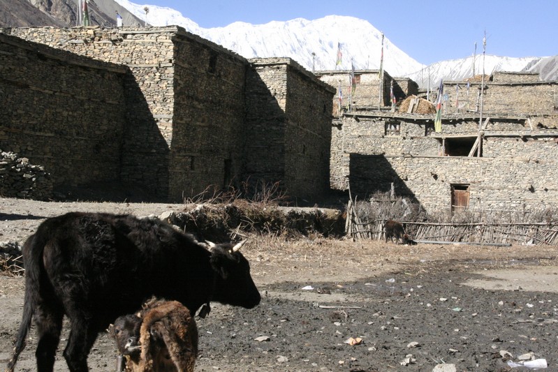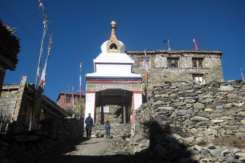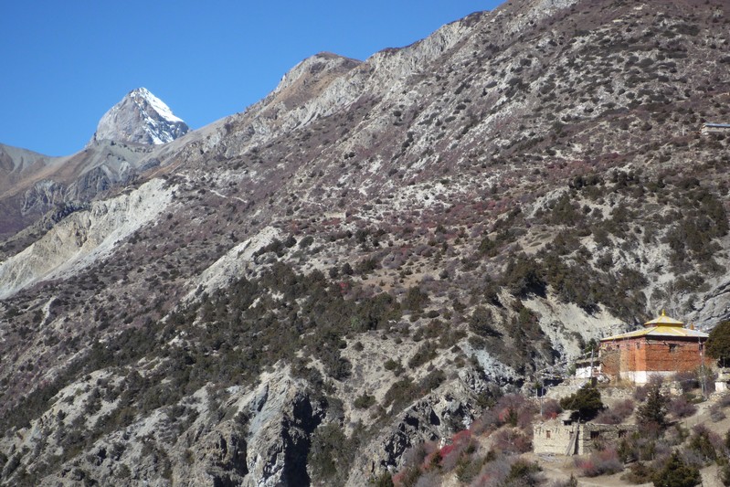 Arrêt à Khangsar pour attendre les porteurs puis déjeuner à Thare Gompa (3950 m), trés ancien monastère face au Tilicho.