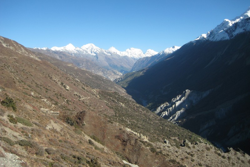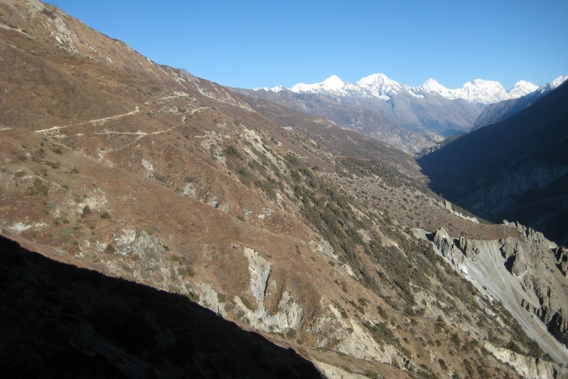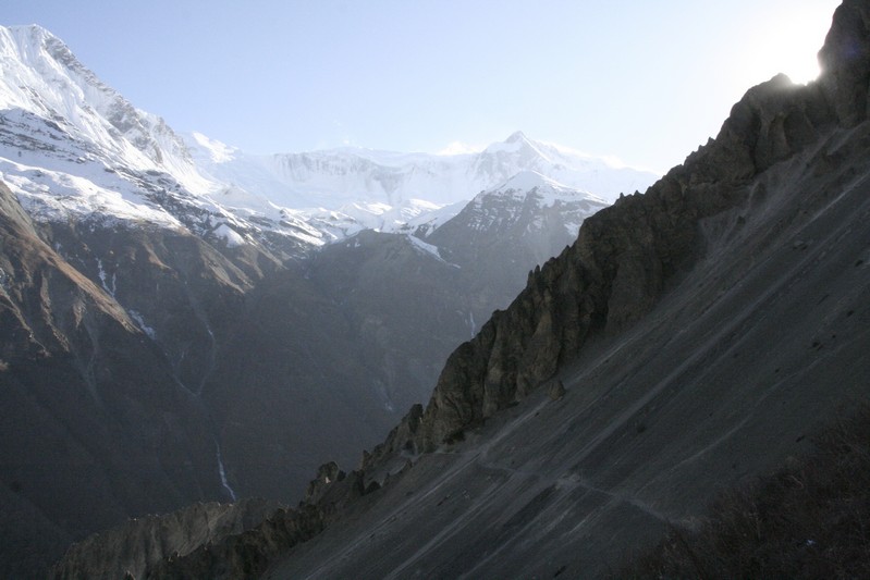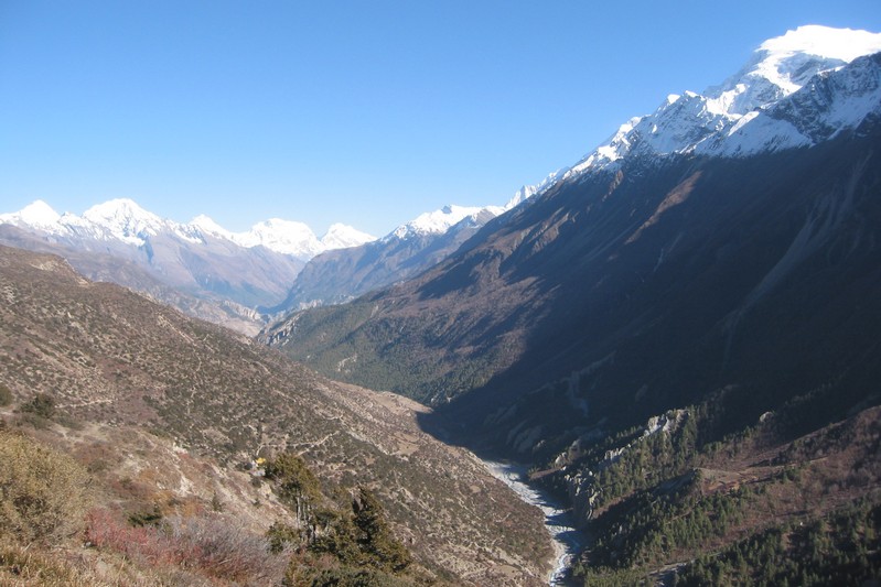 Départ de Manang vers 8 heures, le soleil est étincellant durant tout le trajet plein ouest.