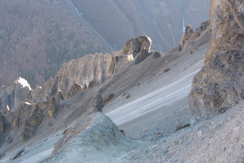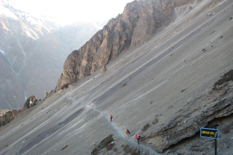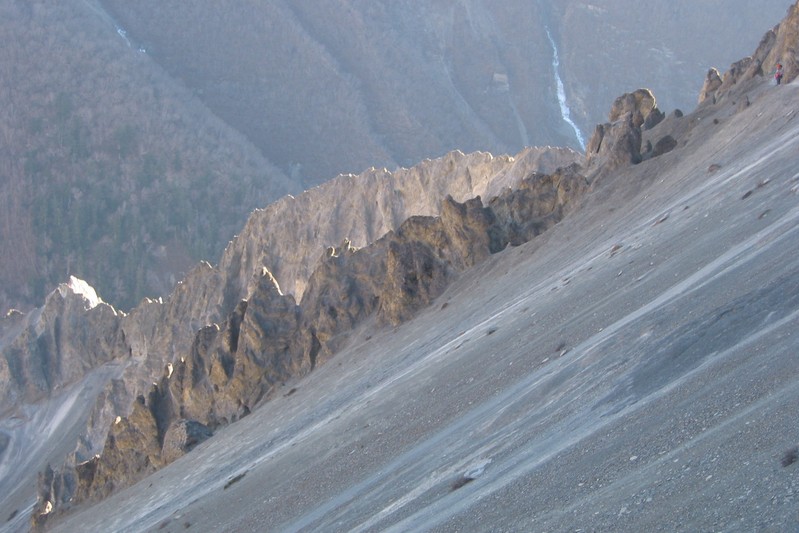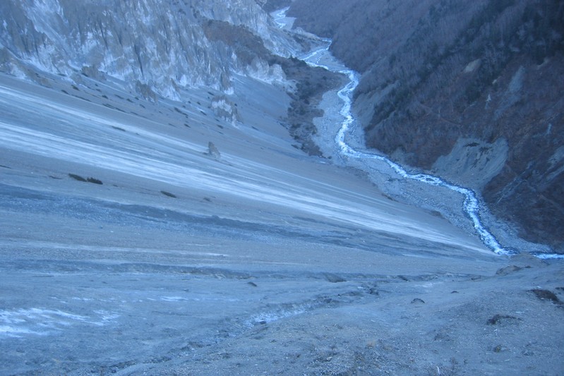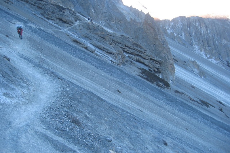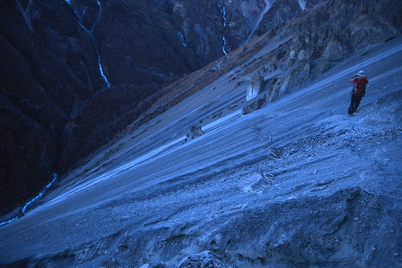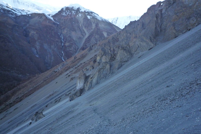 La traversée d'une immense moraine, trés pentue est assez délicate.