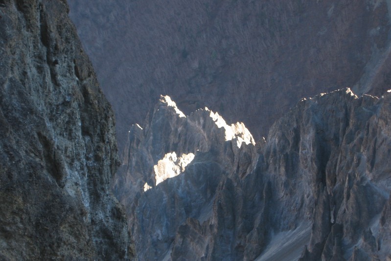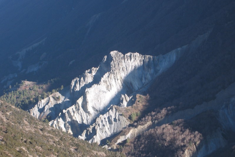 Le spectacle est grandiose... nous apercevons des aiguilles de fées, des torrents, des sommets enneigés.