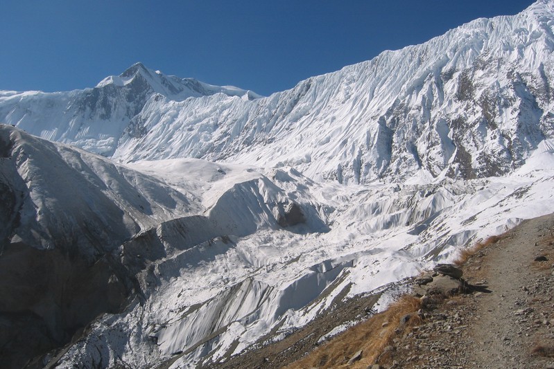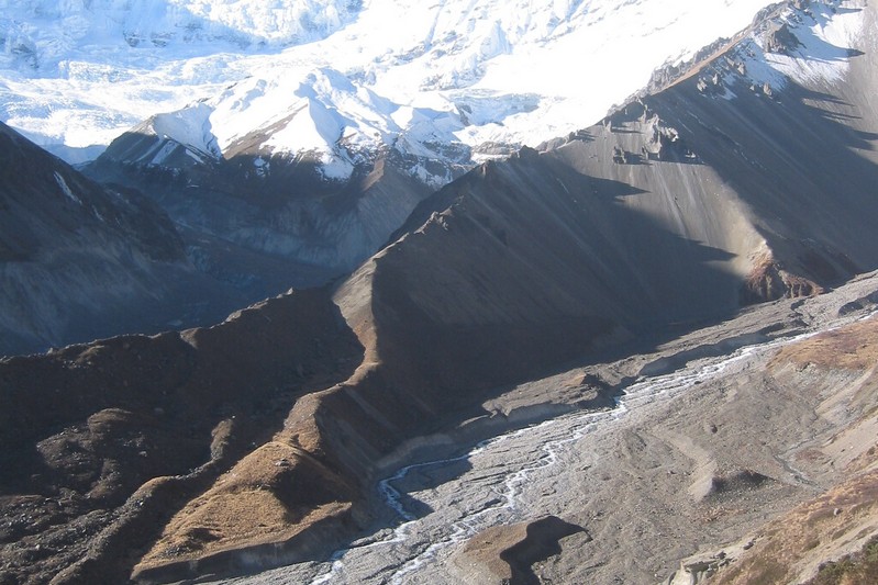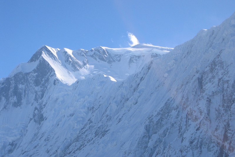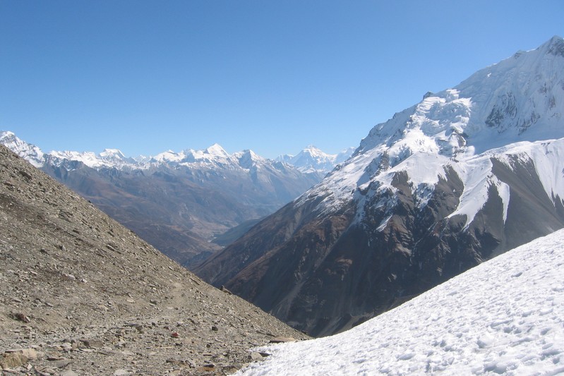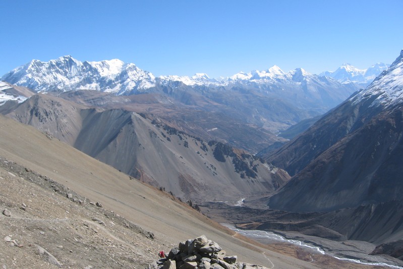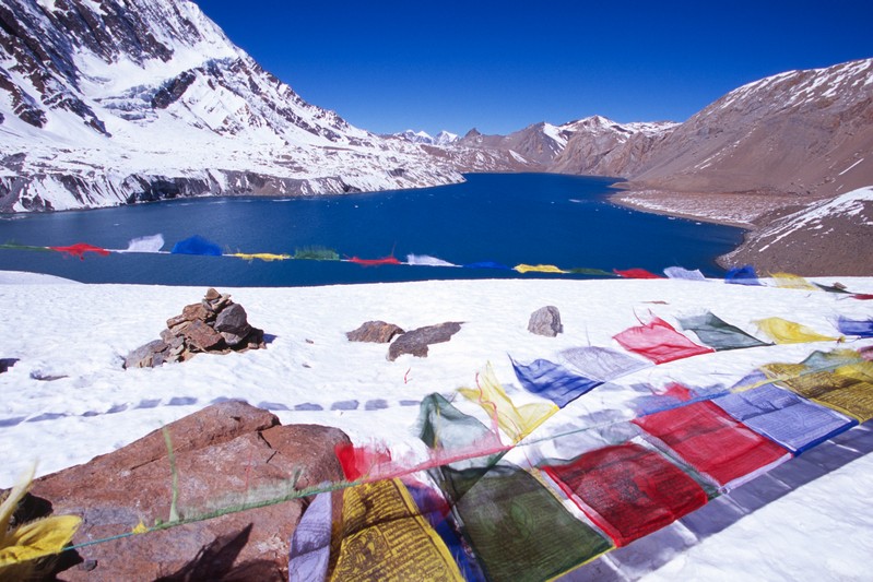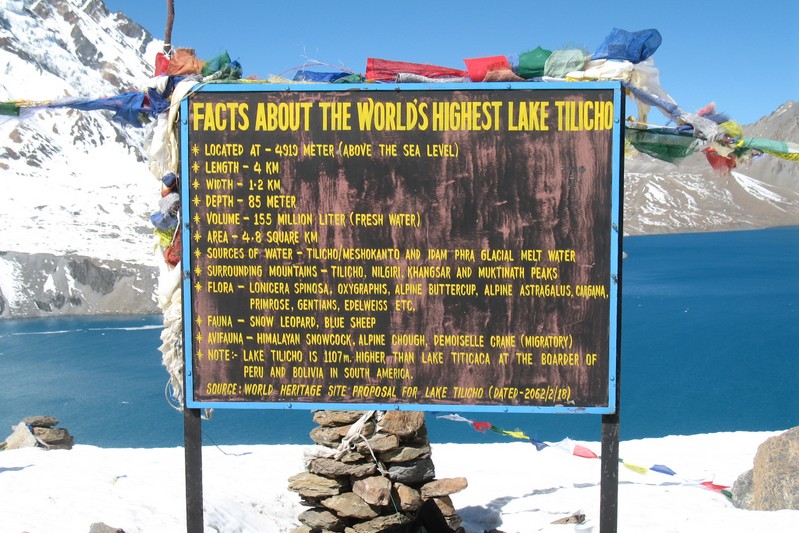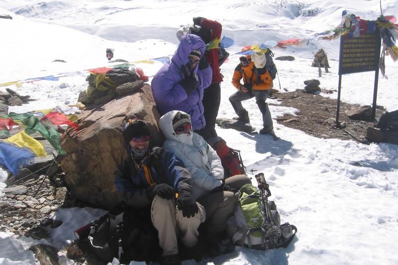 Le chemin pentu est long (2h20)... je parviens finalement le premier au lac Tilicho où le vent glacial souffle trés trés fort...