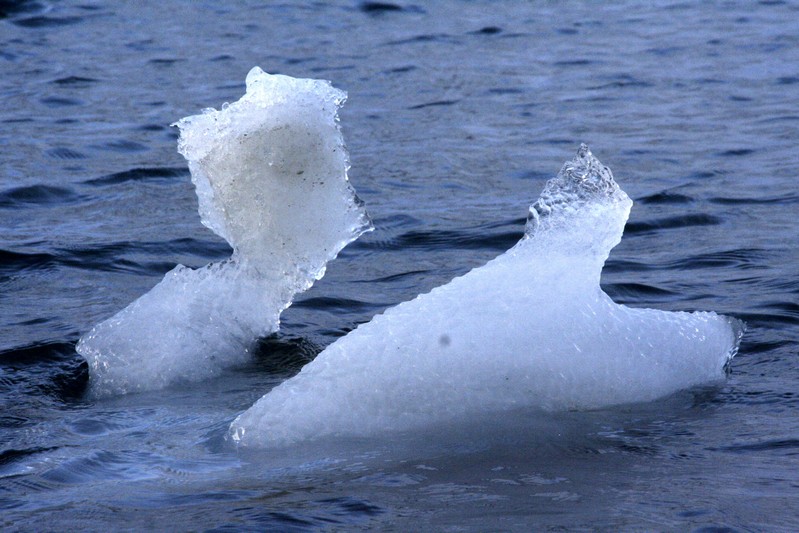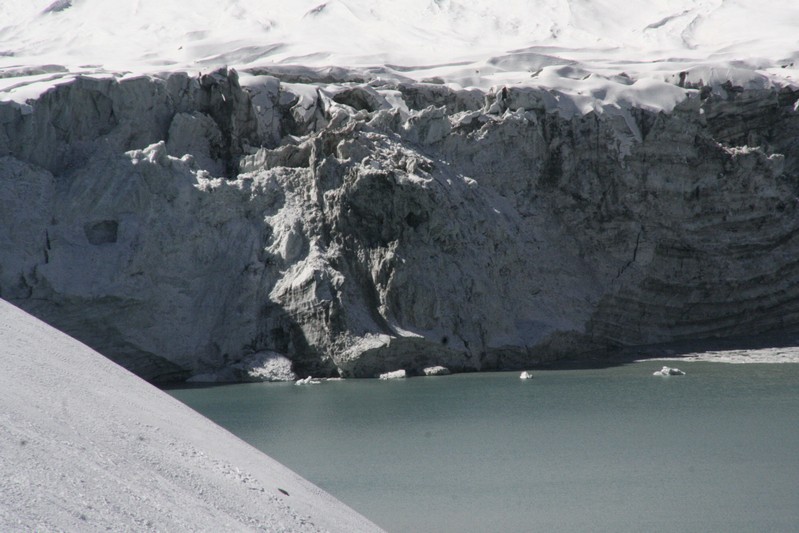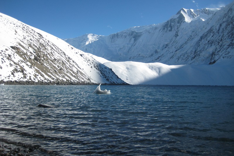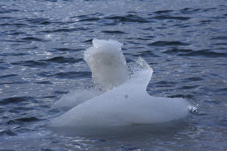 Une petite promenade sur les rives du lac confirme son état glaciaire : des icebergs flottent.