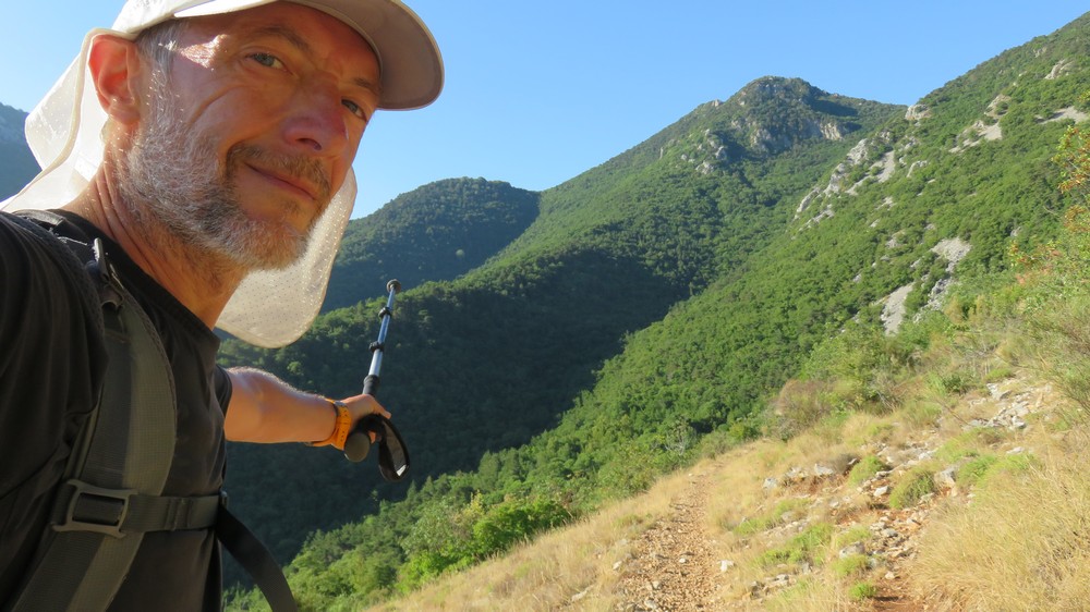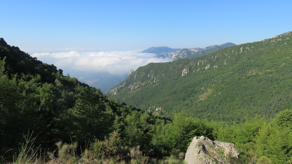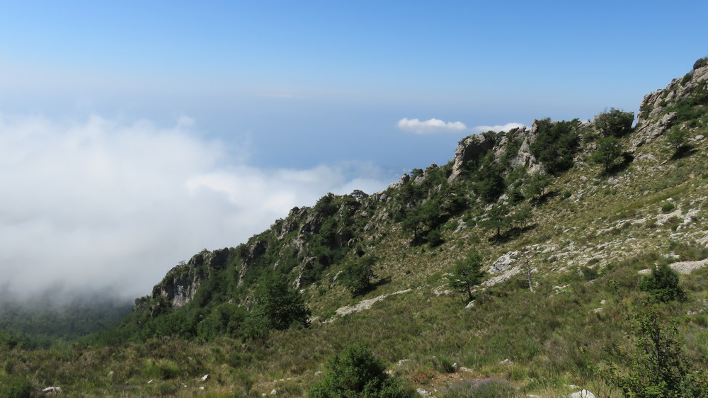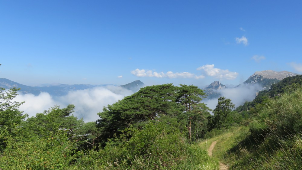 Sospel (348 m) -> col du Razet (1032 m) -> Colla Bassa (1107 m) -> col du Berceau (1050 m) : Dernier petit col avant une interminable dernière longue descente vers la plage sous le chant assourdissant des cigales !..