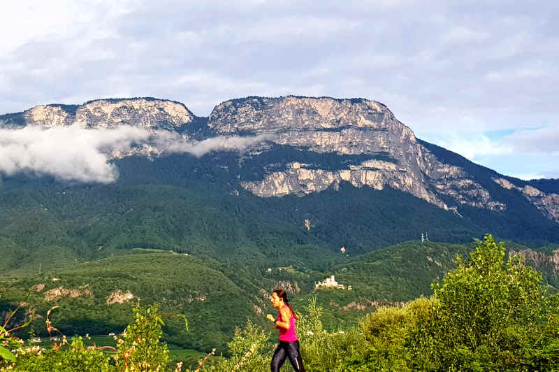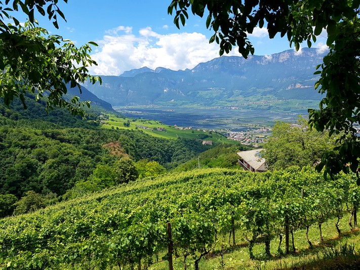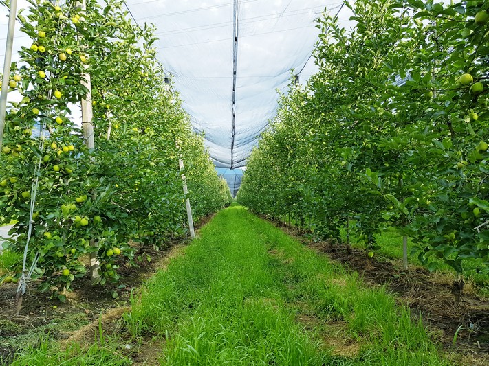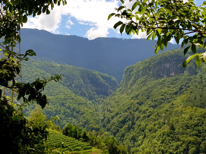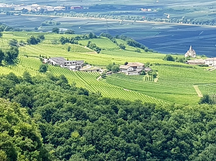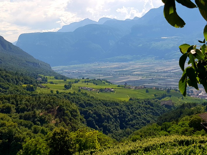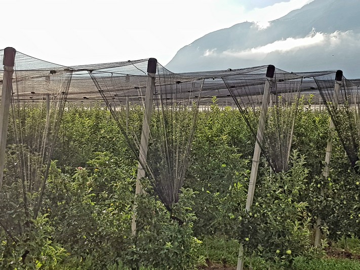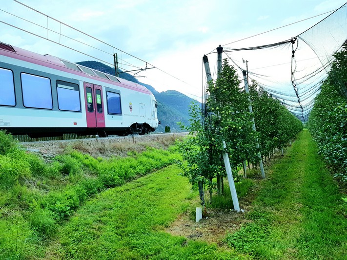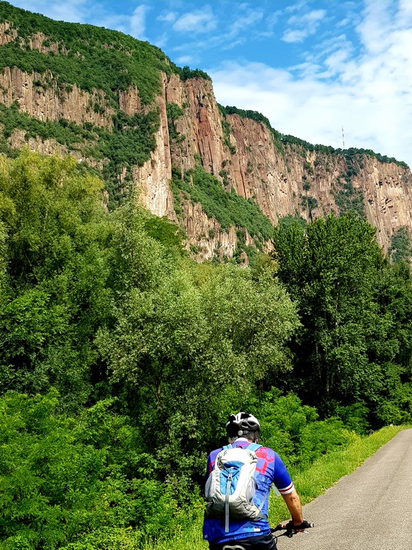 Quasi que de la piste cyclable le long de l'Adige, entre le fleuve et les champs de pommes.