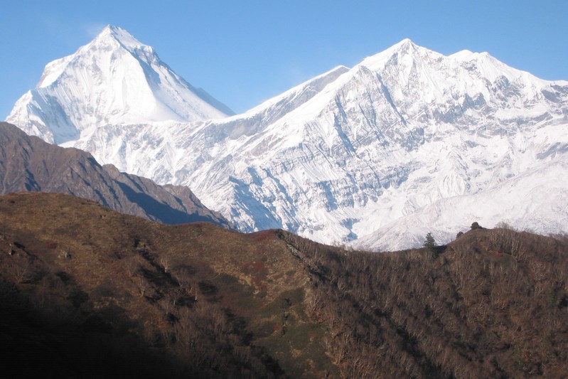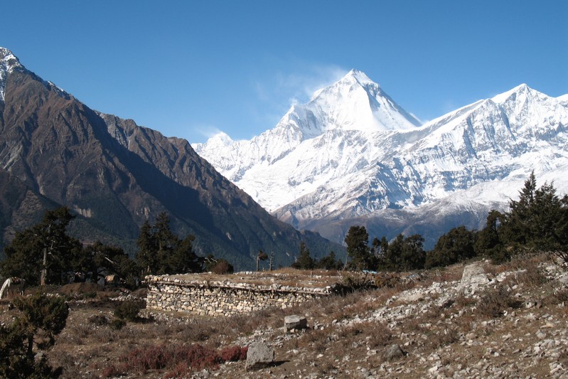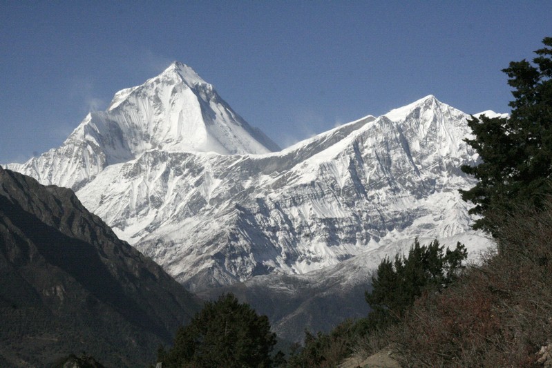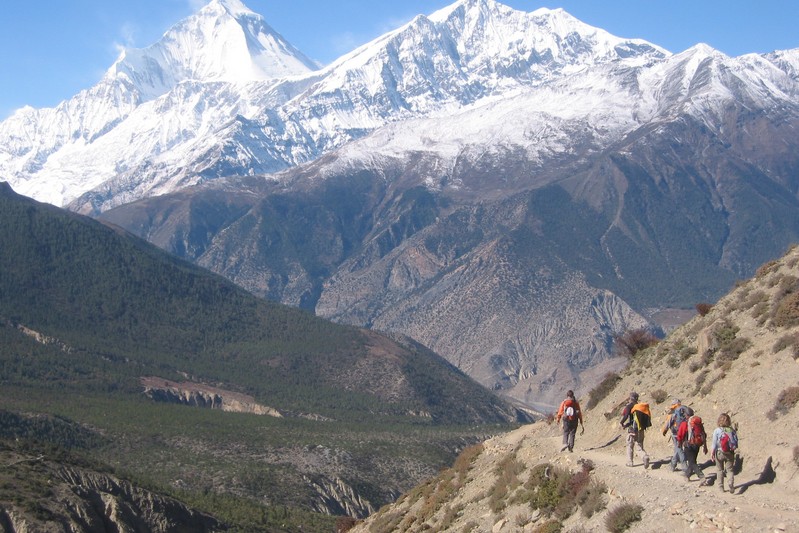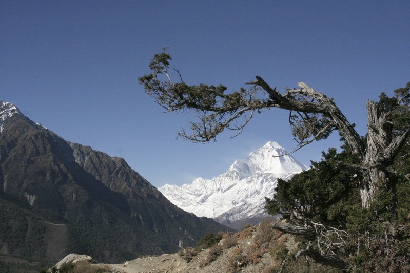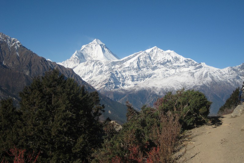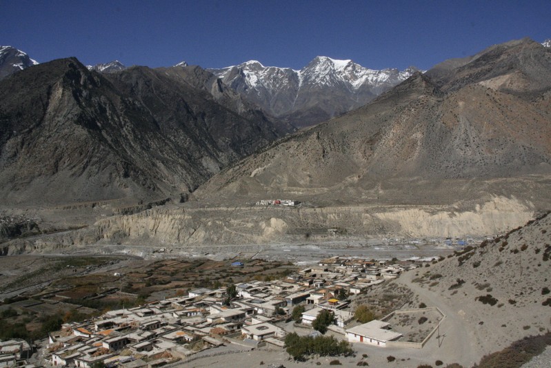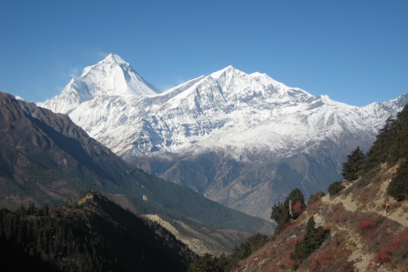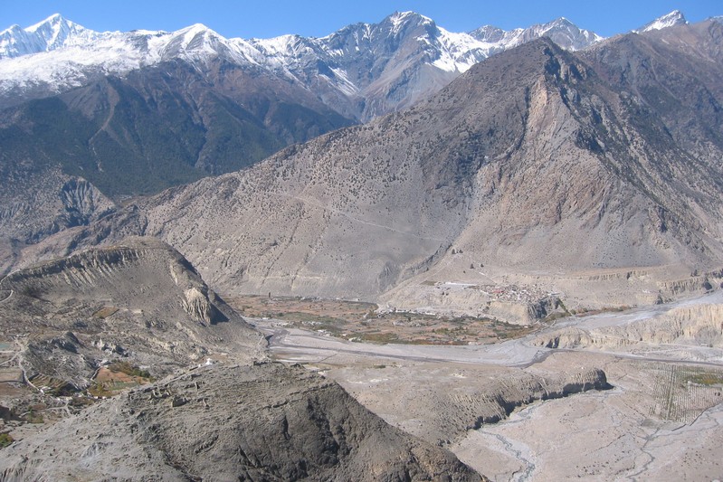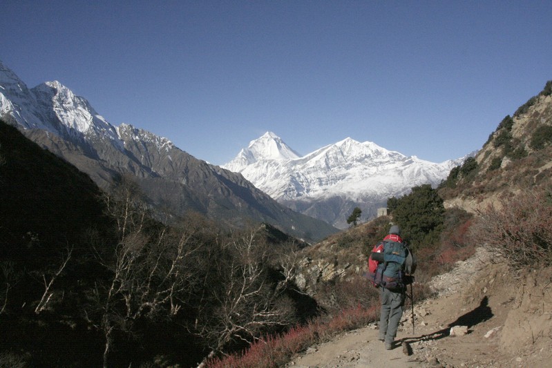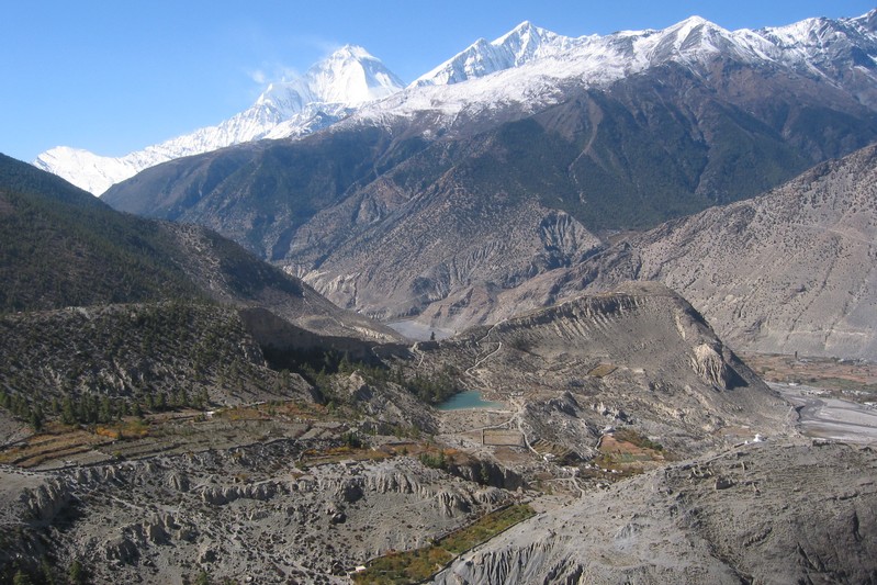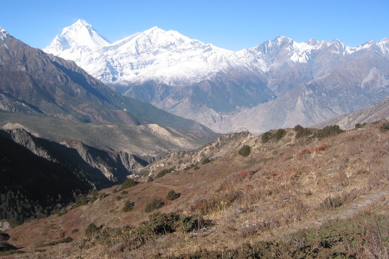 La descente est longue... le Dhawlagiri nous surveille tout le long du chemin jusqu'à Jomosom.