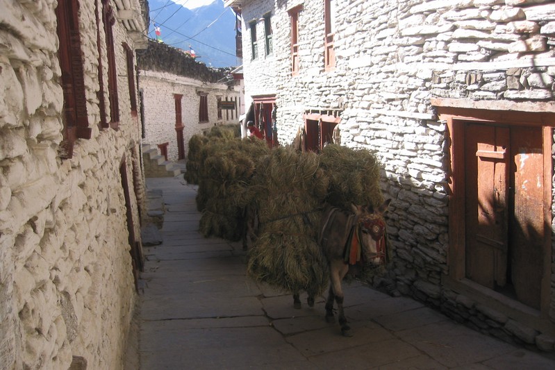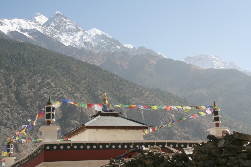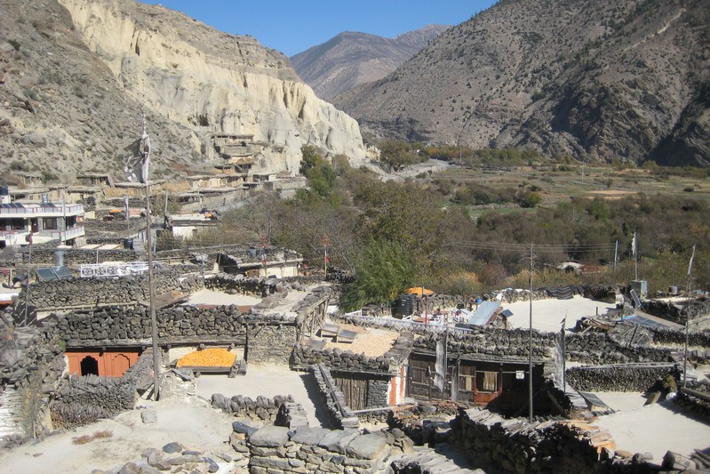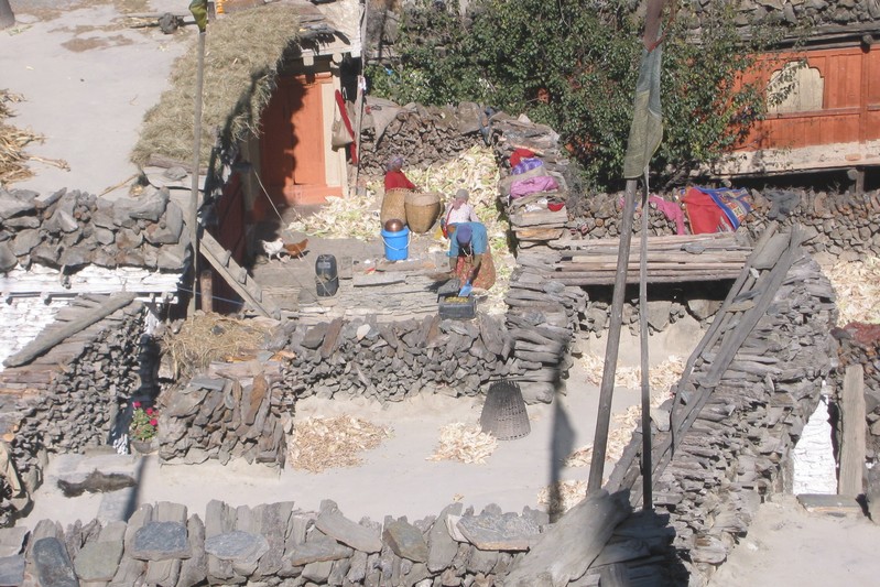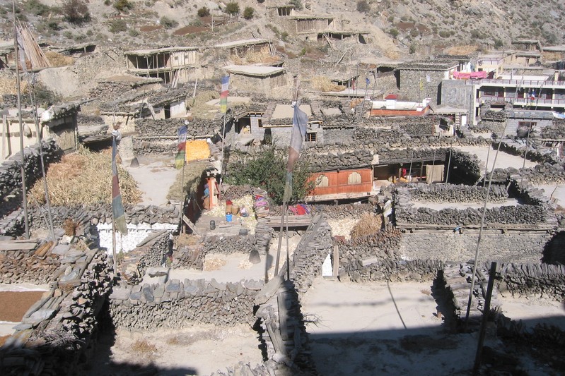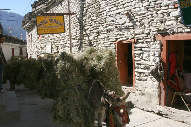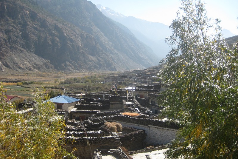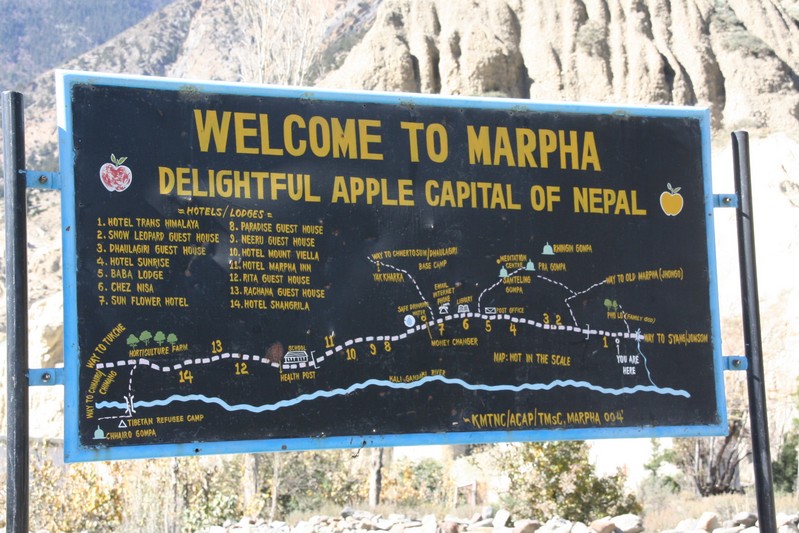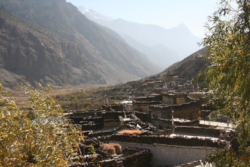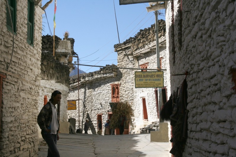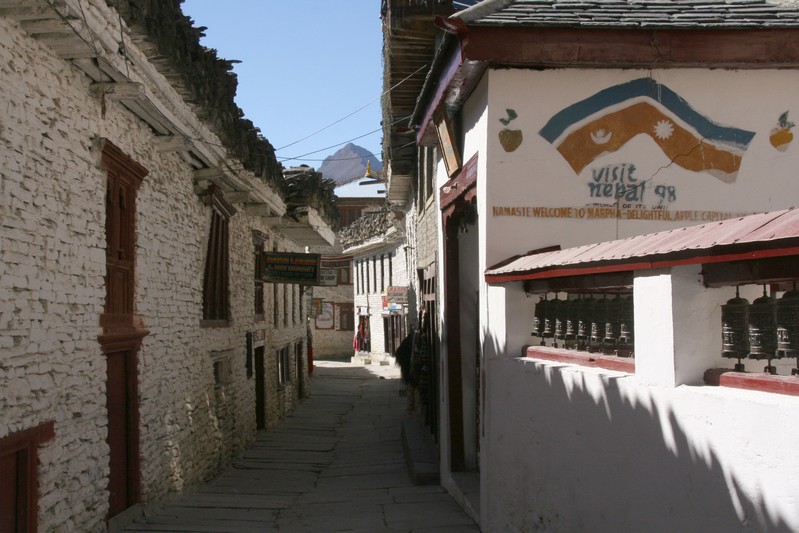 Promenade relax (1h15 de marche) jusqu'à Marpha. C'est un petit village vitrine joliment décoré avec de nombreuses petites boutiques... Quelques achats souvenir (colliers, bol tibétain...).