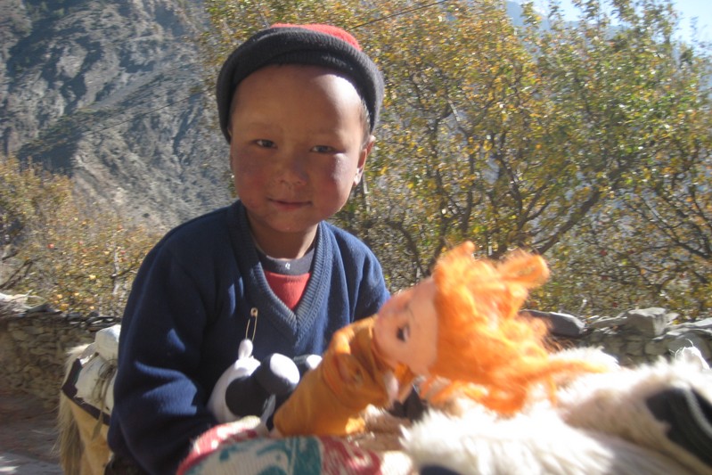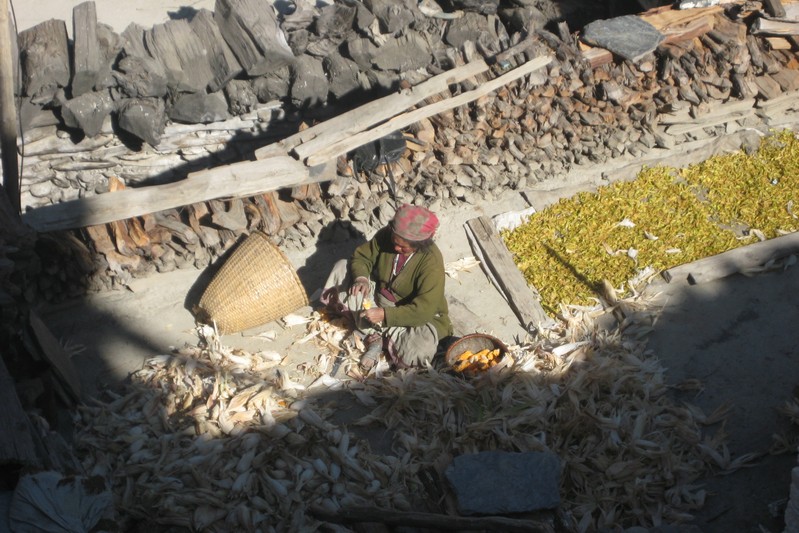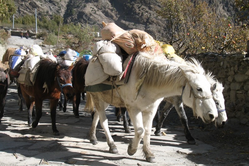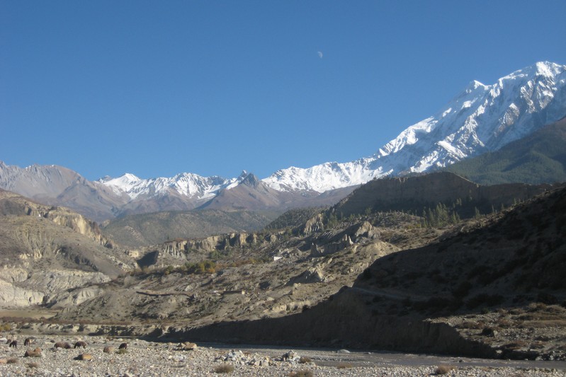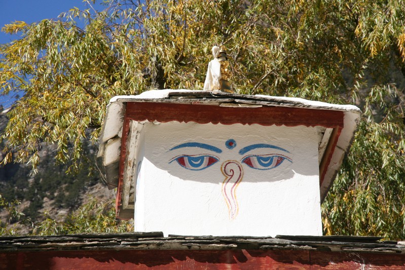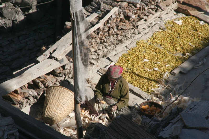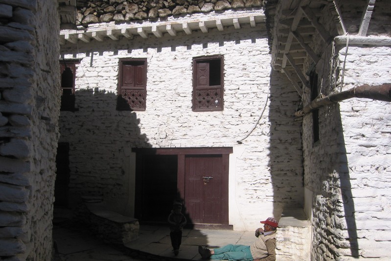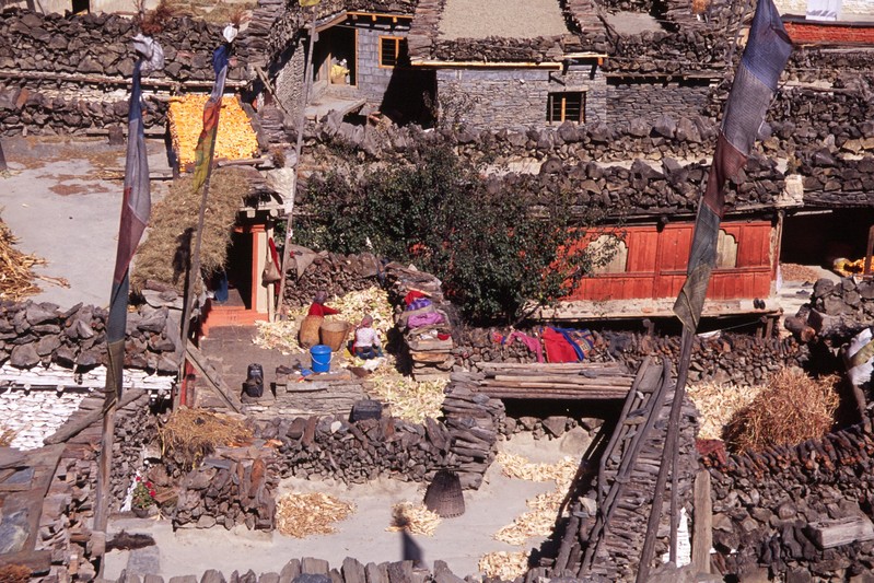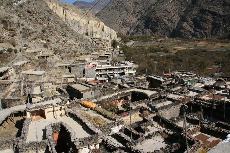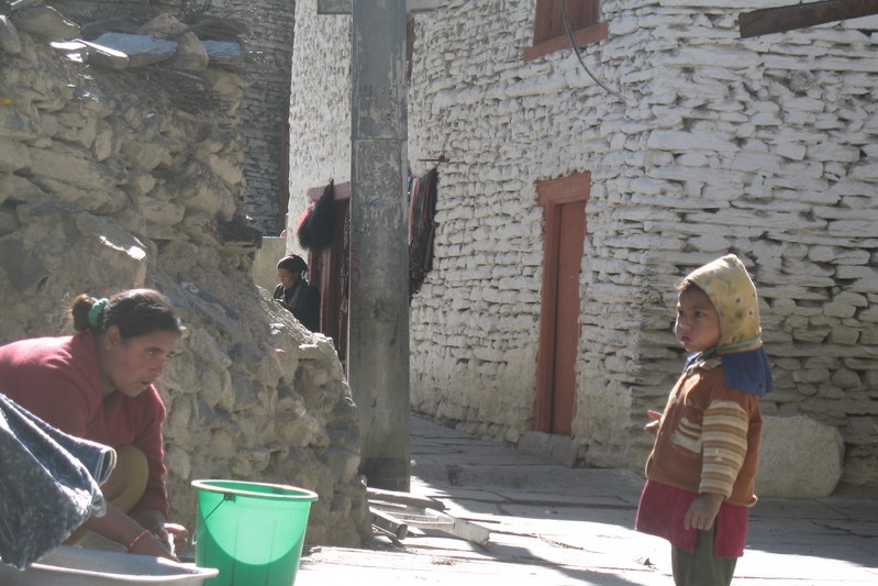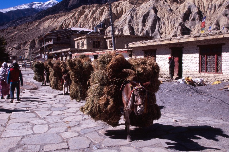 Promenade relax (1h15 de marche) jusqu'à Marpha. C'est un petit village vitrine joliment décoré avec de nombreuses petites boutiques... Quelques achats souvenir (colliers, bol tibétain...).