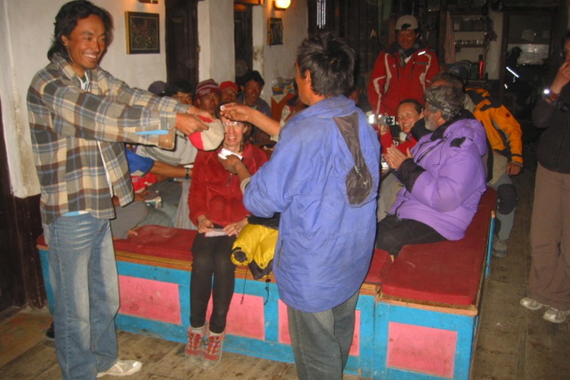 ...c'est la soirée des adieux pour la plupart des porteurs et de l'équipe cuisine...