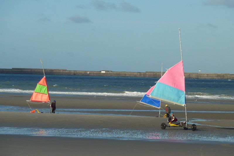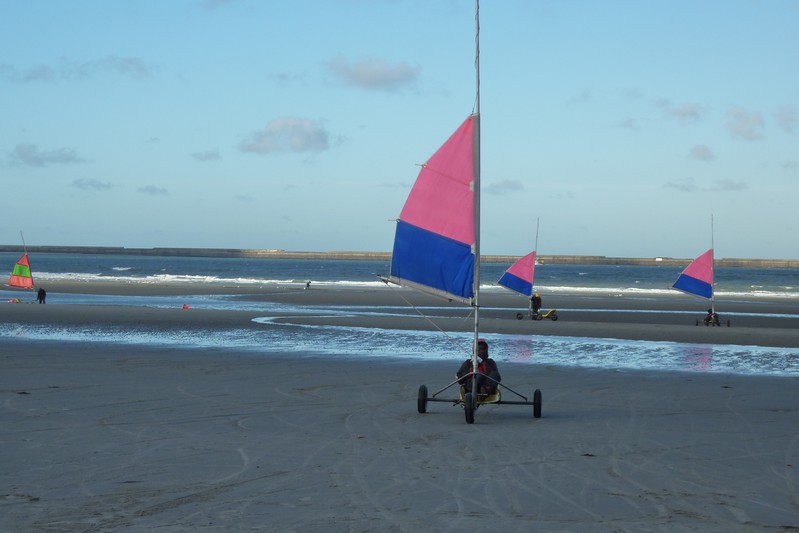 Je rencontre les premiers adeptes du char à voile à Boulogne sur Mer..