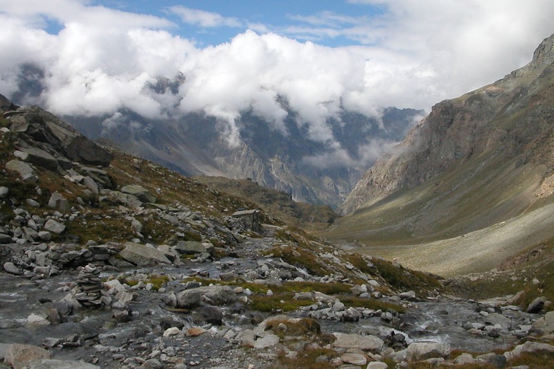 Une longue descente est amorcée de l'autre côté vers la vallée de Valsavarenche, en suivant le torrent de Lévionaz.
