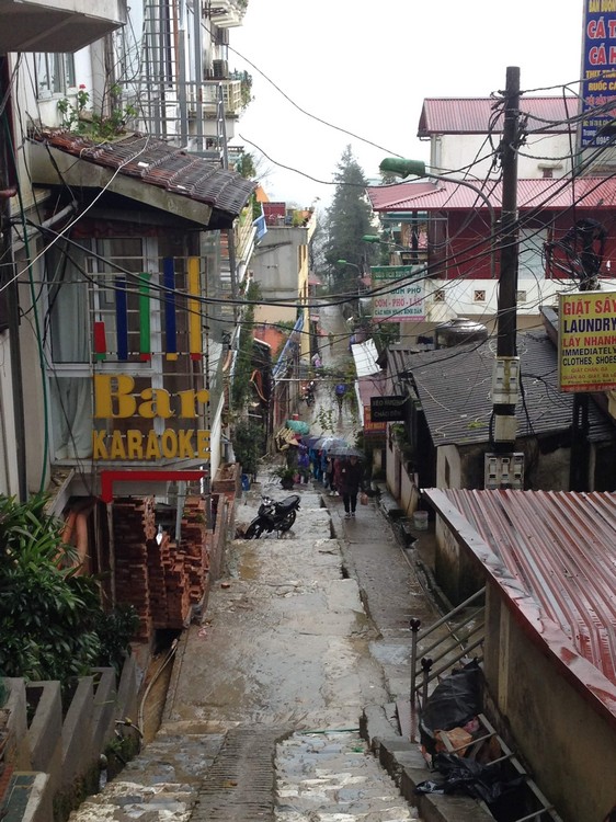 Puis nous empruntons le bus local pour Sa Pa (38 km). Il pleut sans discontinuité toute la journée et nous sommes finalement heureux