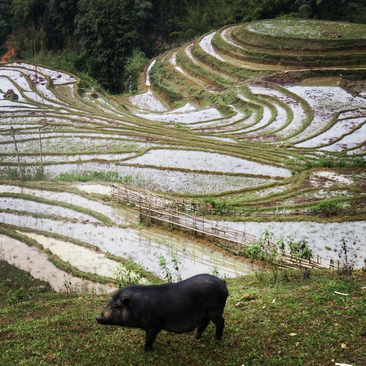 Ballade le lendemain dans le village de Cat Cat (très touristique), suivie d'une échappée de plusieurs heures à travers les rizières (car le brouillard s'est levé et la pluie s'est calmée)..