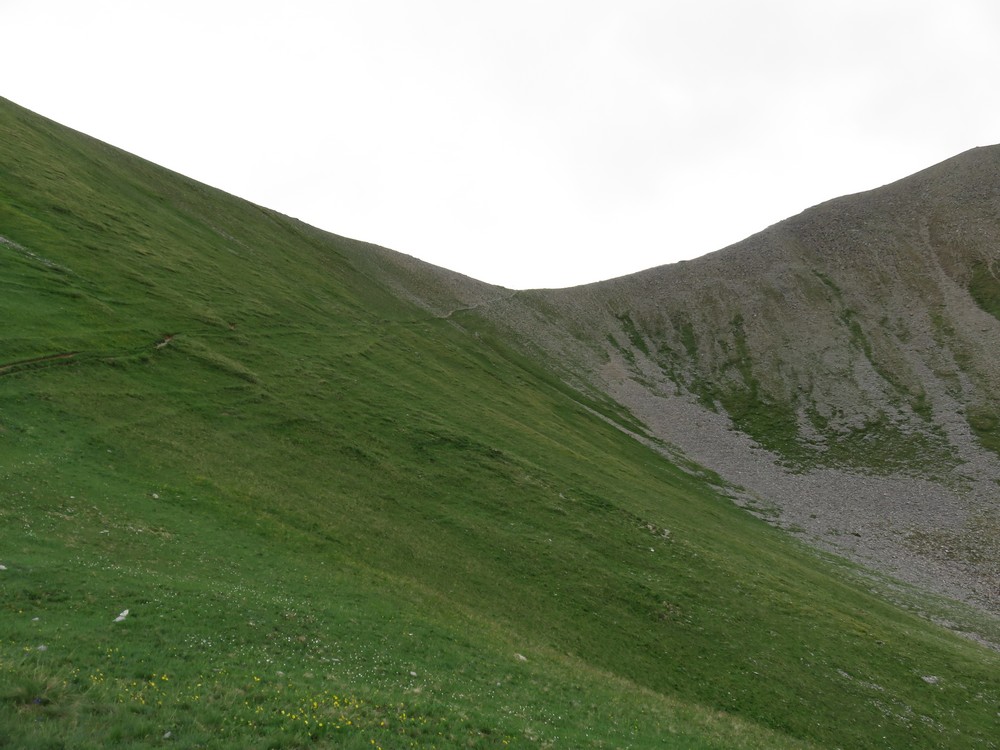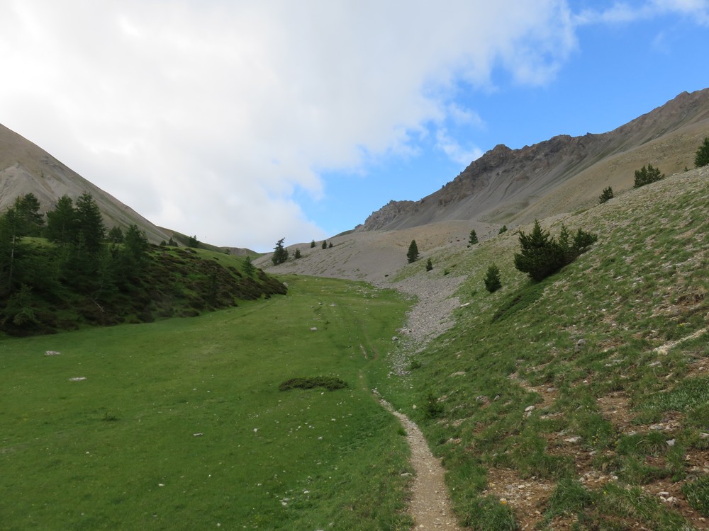 Longue montée linéaire sur chemin large avant d'emprunter le sentier des cols.