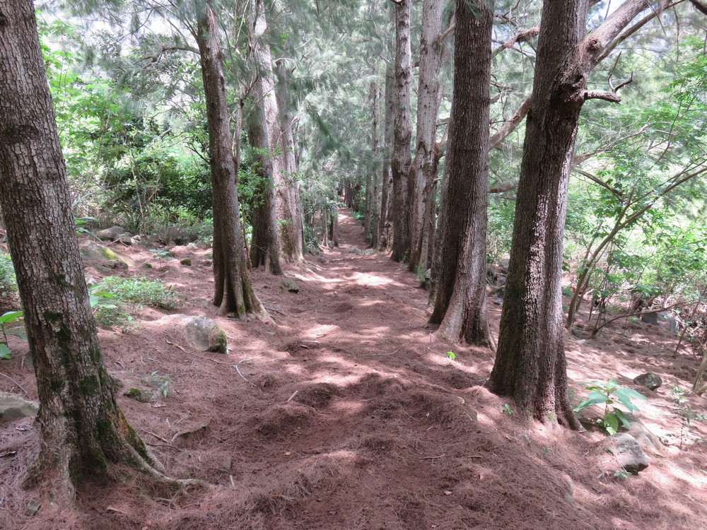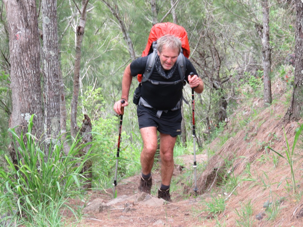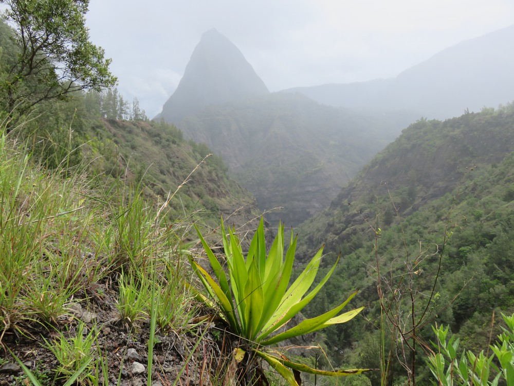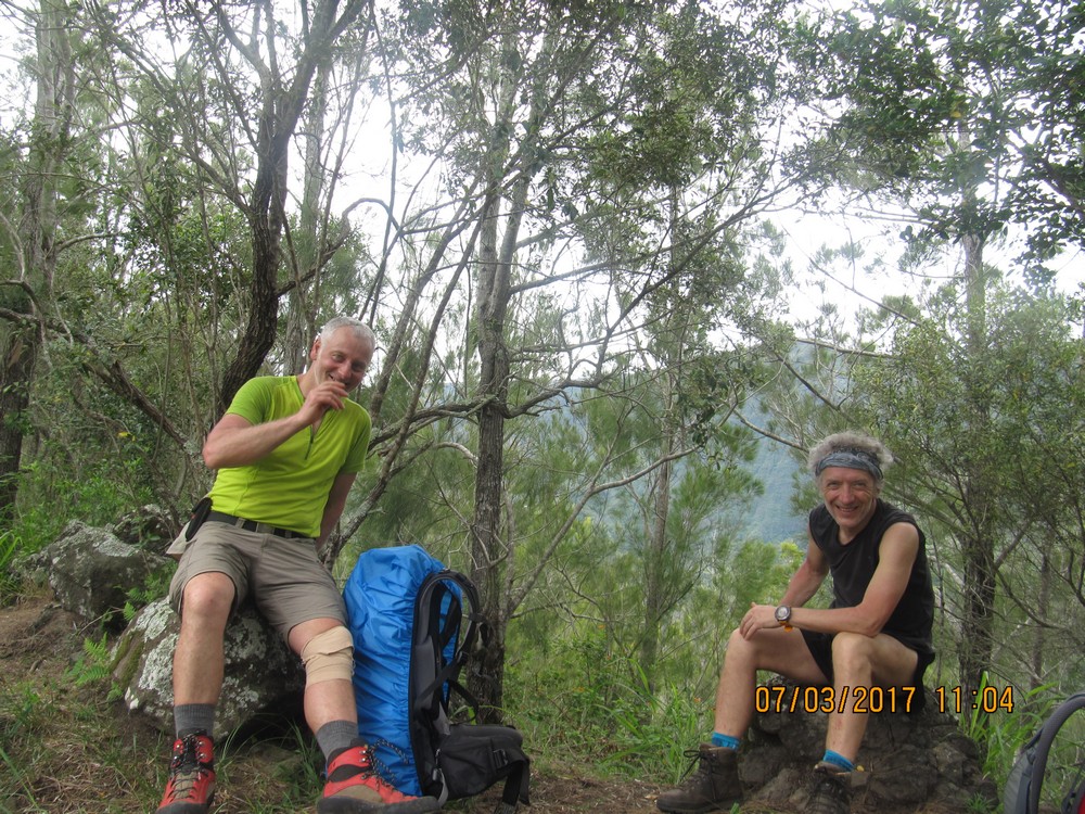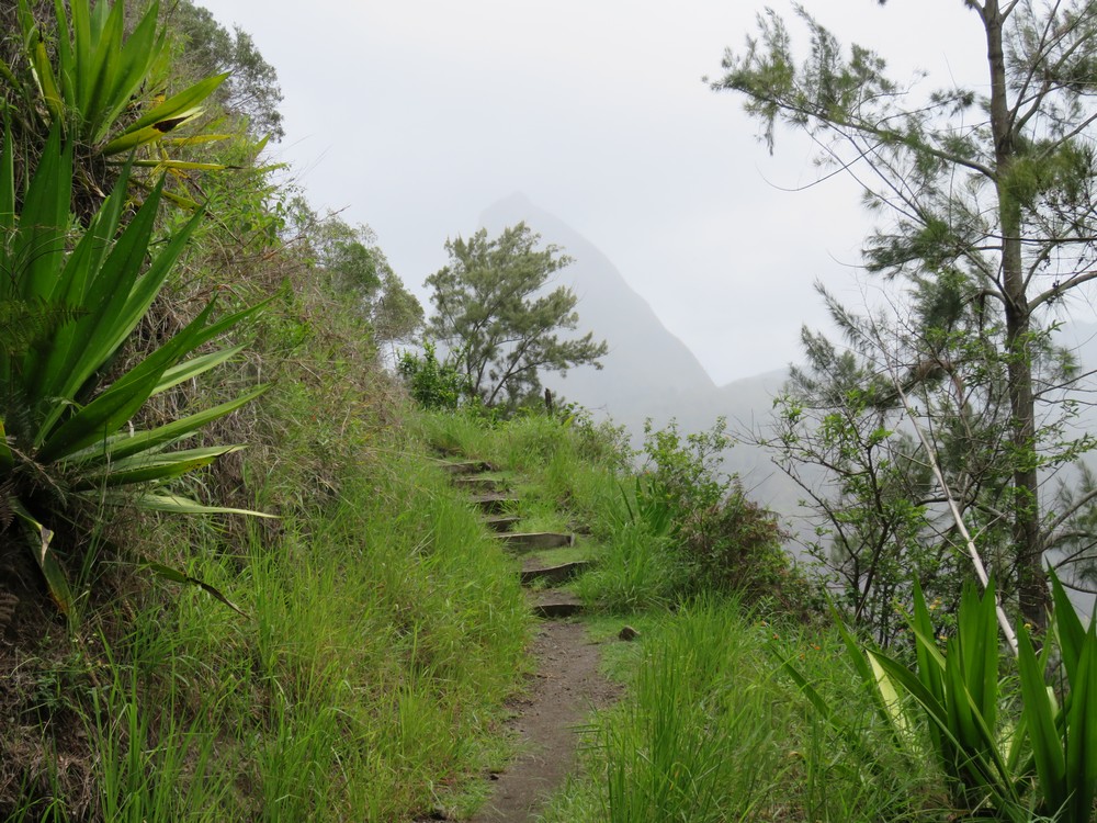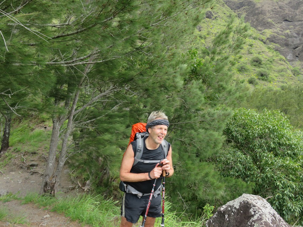 Après un petit déjeuner varié et copieux, nous prenons le sentier sous la bruine.