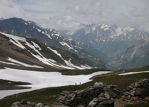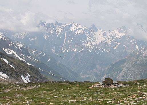 Cairns et glaciers se succèdent : le glacier des glaciers, le glacier d'Estelette...