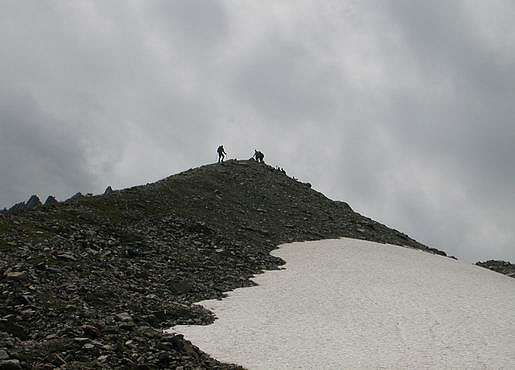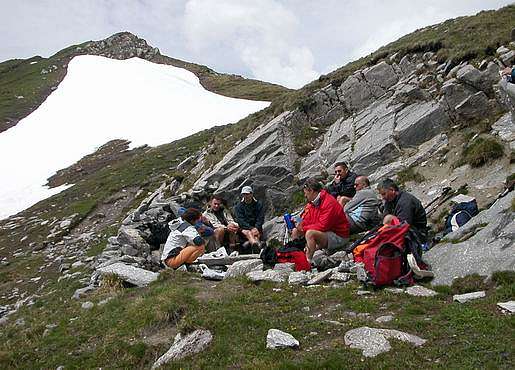 Déjeuner au col à l'abri du vent puis petite variante par le col des pyramides (côté gauche bunker)...