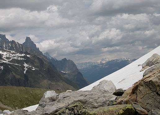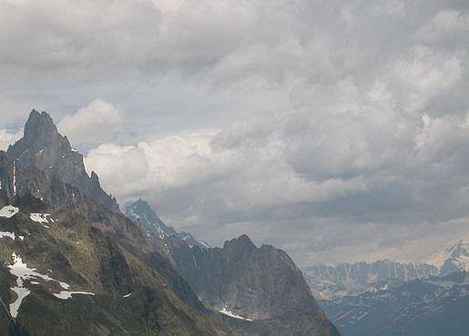 Vue splendide sur les aiguilles de Tré la tête et des glaciers.