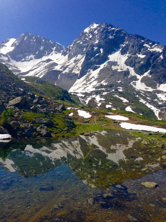 Trop de neige molle sur le col fenêtre et le sentier est invisible.. donc il est encore fort conseillé de redescendre dans la vallée et de
