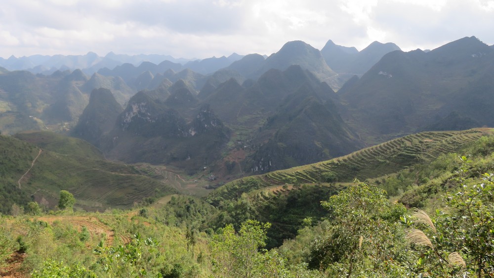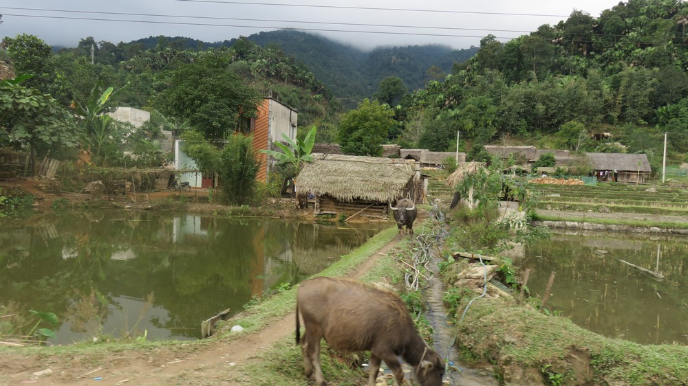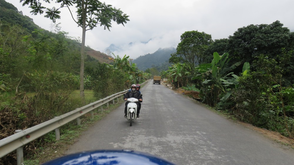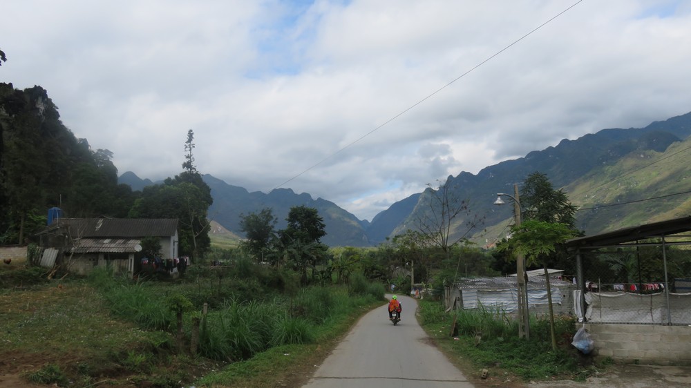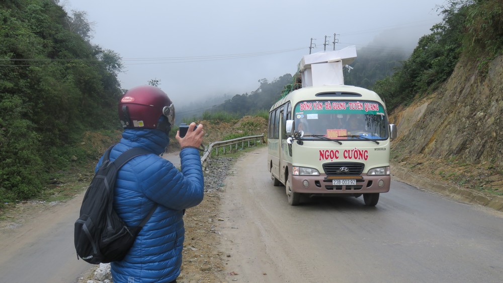 Un long et fatiguant trajet en minibus nous dépose finalement à Ha Giang (prononcer Ha Zang) vers 16 heures. Nous prenons place dans notre chambre d'hostel avant de négocier une excursion de trois jours en moto avec guides pour le lendemain matin.