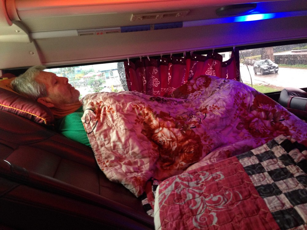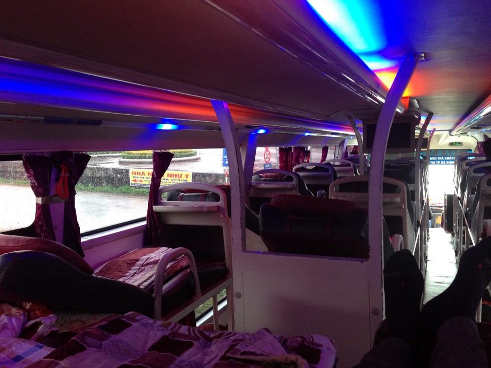Le lendemain, nous retrouvons la pluie diluvienne lors de notre retour sur Hanoi.. mais cette fois, le bus est luxueux avec couchettes et wifi.