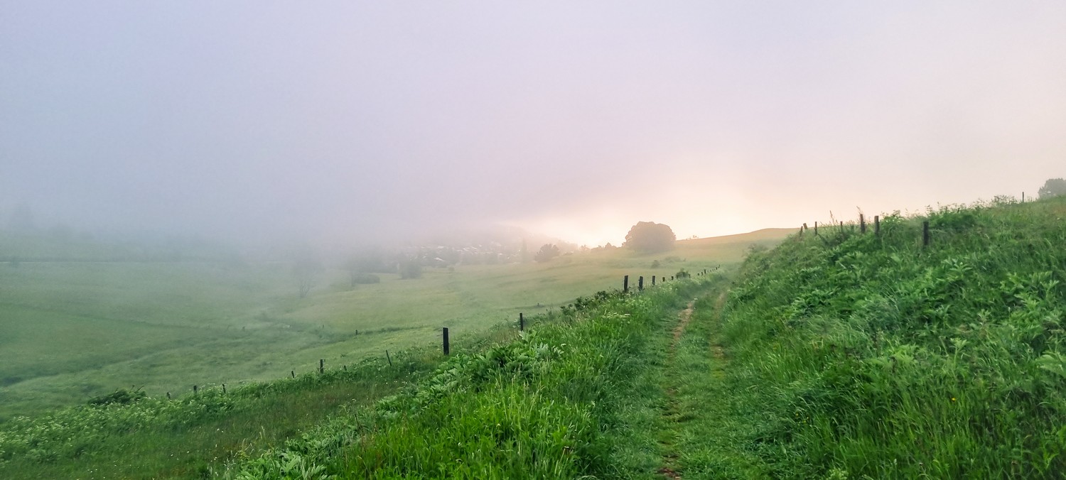 La marche dans la brume du matin est plaisante et facile jusqu'à Planes.