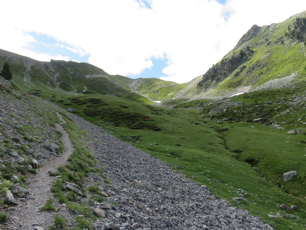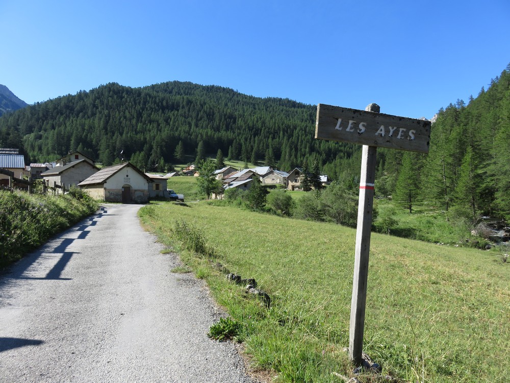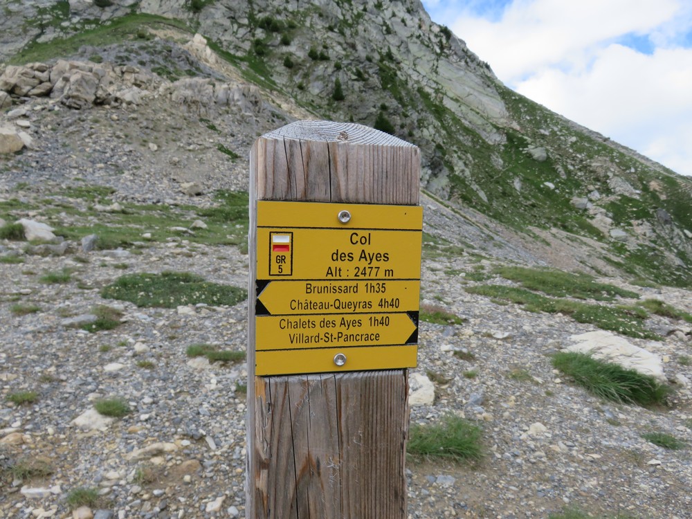 Départ 8 h. Longue montée entre sentiers et route passant par : chalets de Ayes (1711 m), chalets de 'Vers le col'(2163 m), Col des Ayes (2477 m) puis descente vers Brunissard (1746 m).