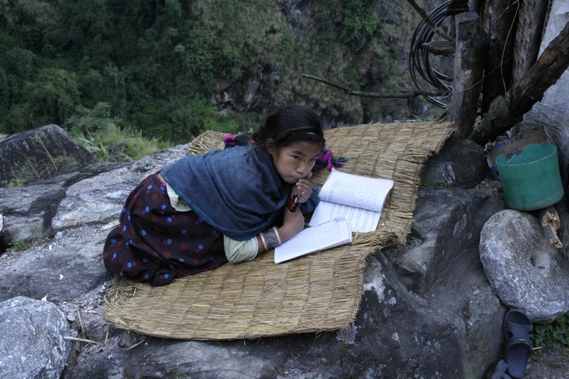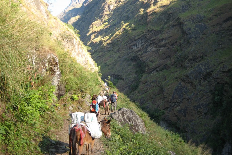 Nous partons pour un relief typique de montagnes népalaises : montées et descentes successives ! ...et ceci en continu et sous un soleil de plomb..