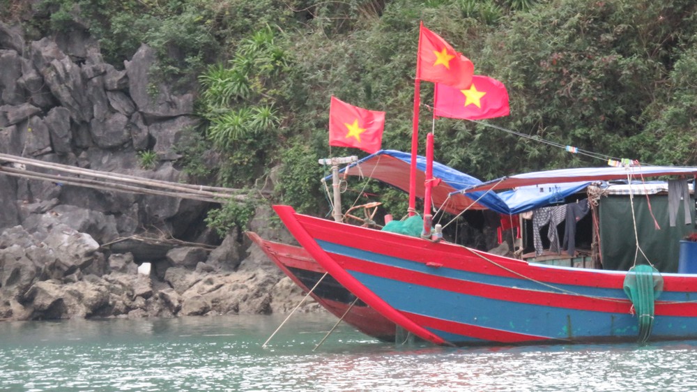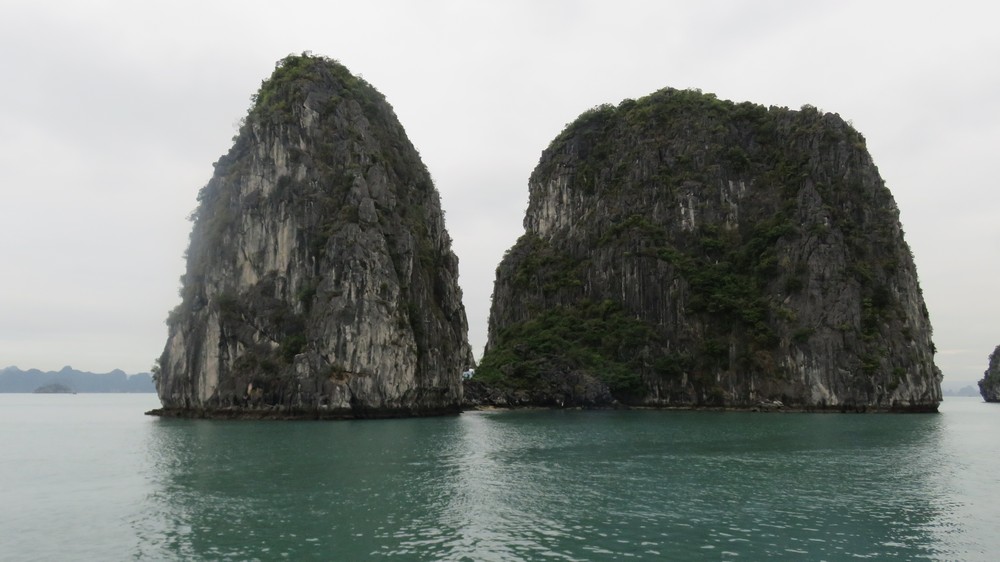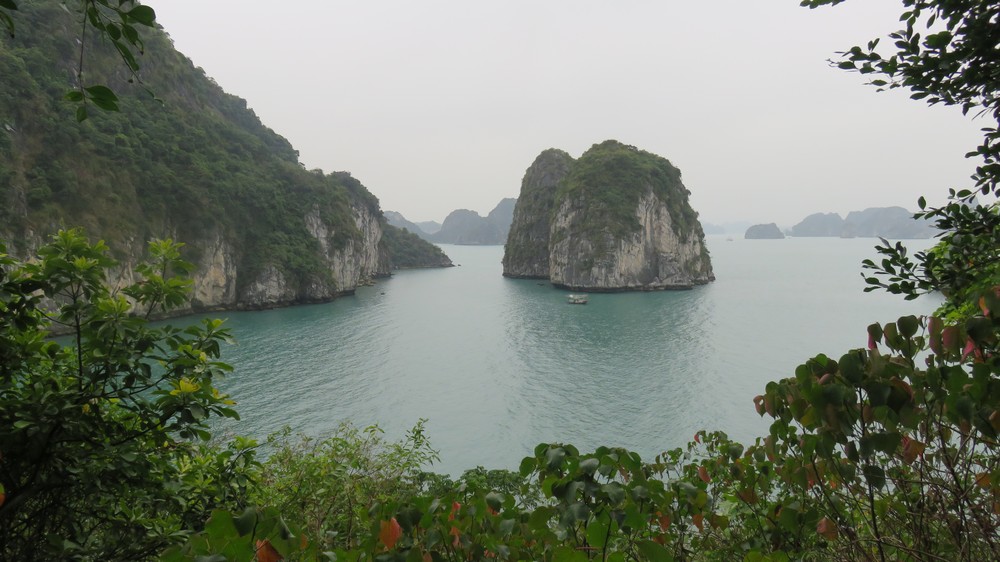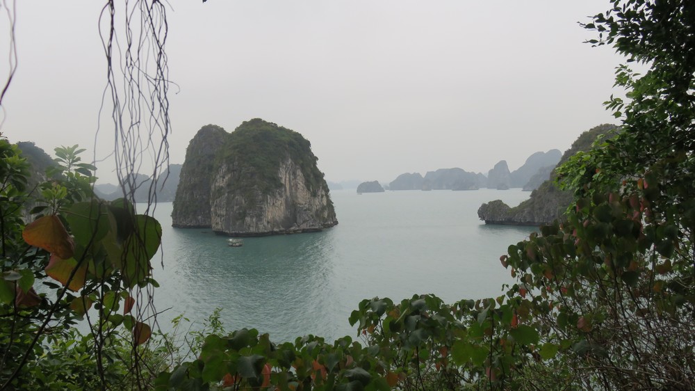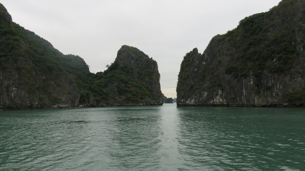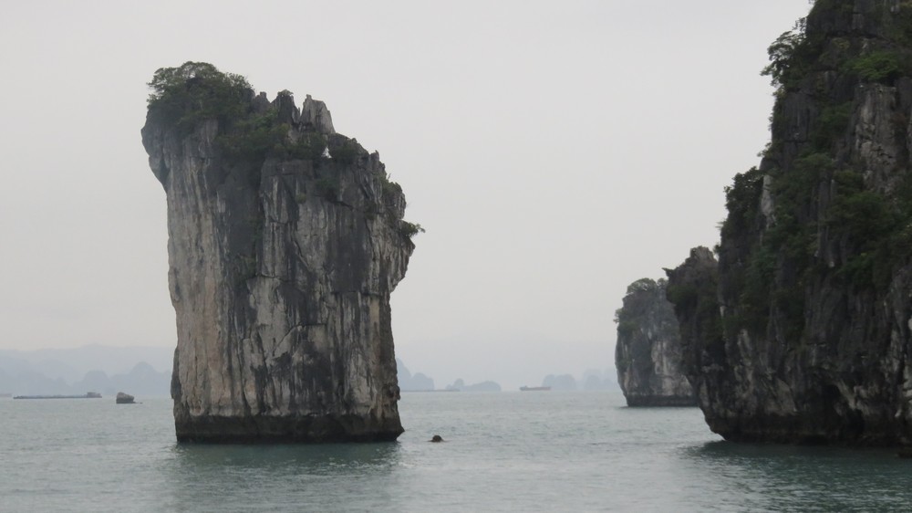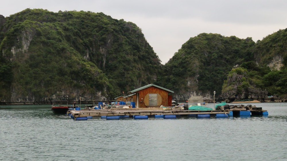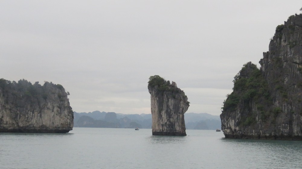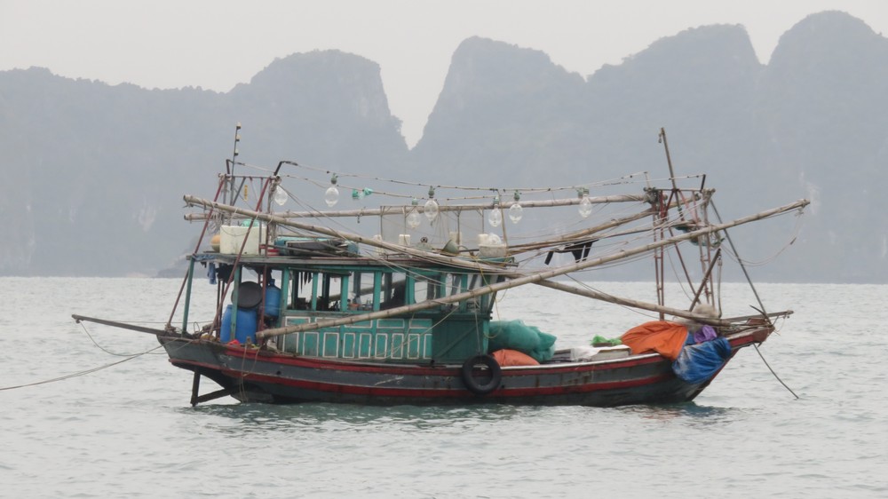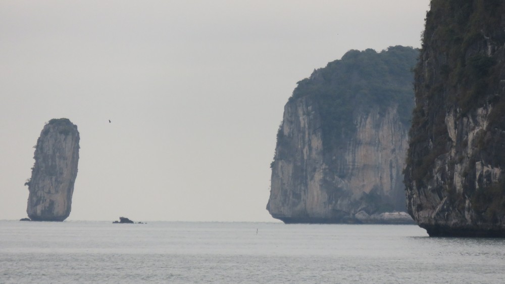 Notre bateau s'appelle le 'Dragon Bay' et, entre deux groupes de touristes, nous promène sur les eaux calmes de la gigantesque baie d'Halong. Plusieurs haltes sont effectuées pour la visite de grottes, une échappée en kayak, ou la rencontre de pêcheurs..
