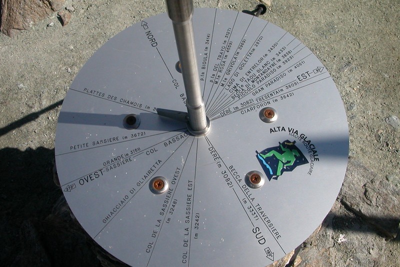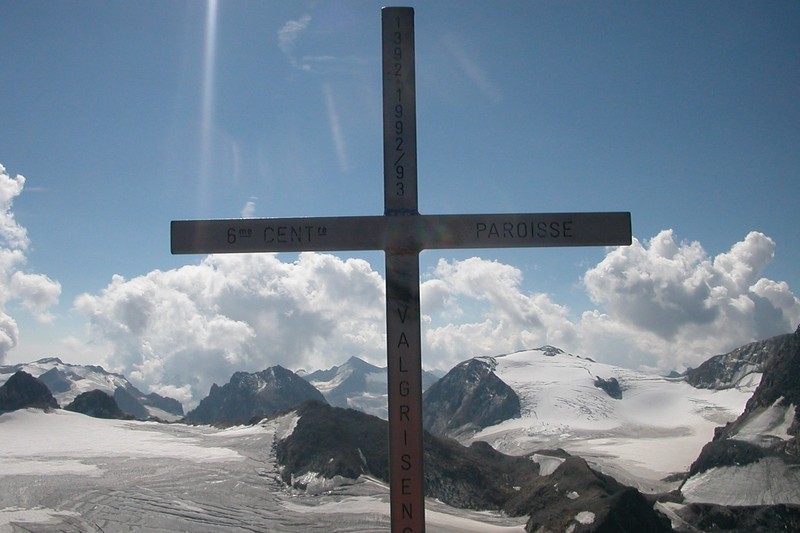 On aperçoit le Grand Paradis, le Mont Blanc, la haute Tarentaise,