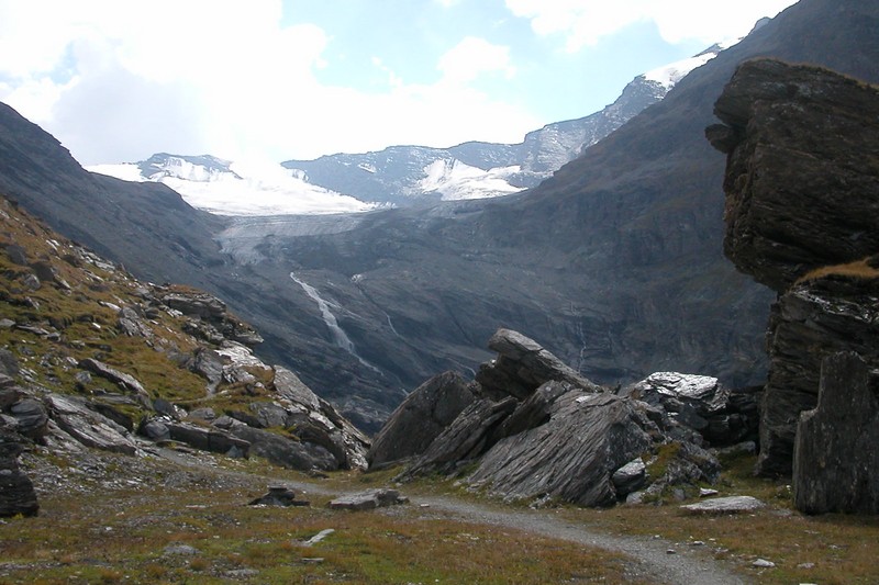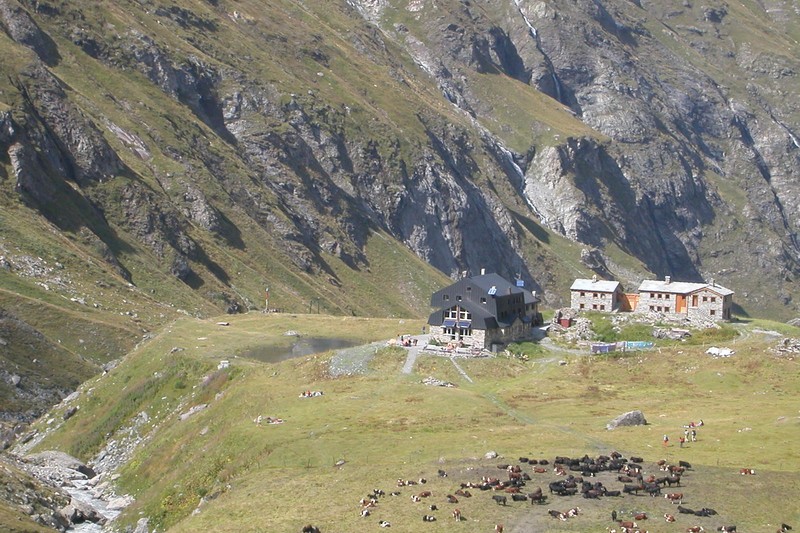 Après un déjeuner bénéfique et bien arrosé, descente face aux glaciers de glairetta et de Vaudet (sentier 12C), direction le refuge